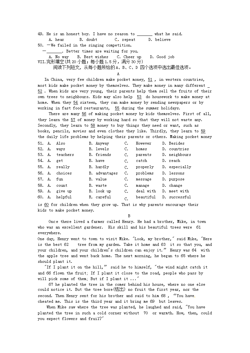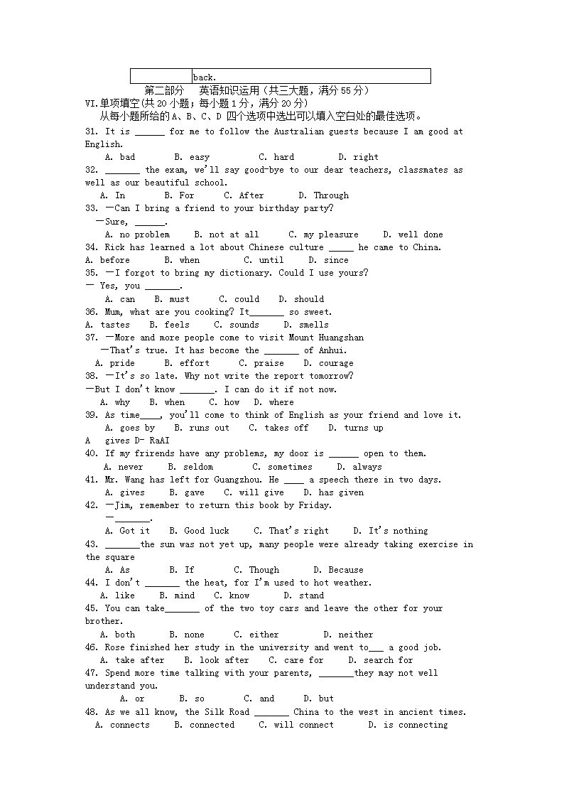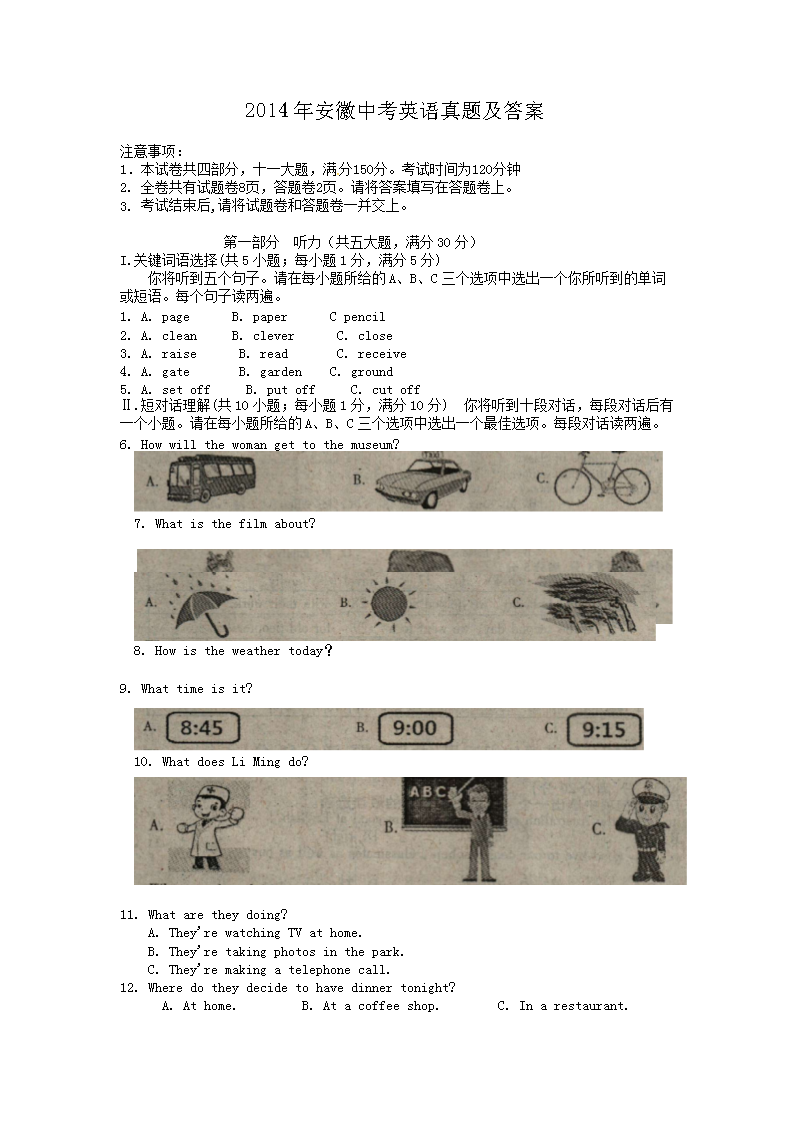 【文档预览】 无忧考网整理发布2014年安徽中考英语真题及答案(Word版),前五页预览如下: