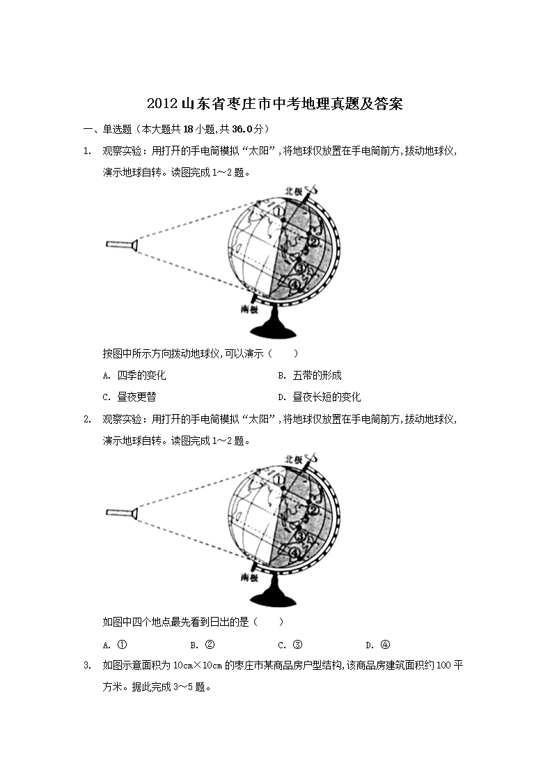 【文档预览】 无忧考网整理发布2012山东省枣庄市中考地理真题及答案(Word版),前五页预览如下: