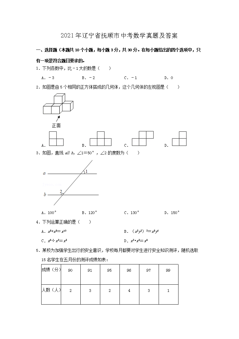 【文档名称】 2021年辽宁省抚顺市中考数学真题及答案(Word版).doc