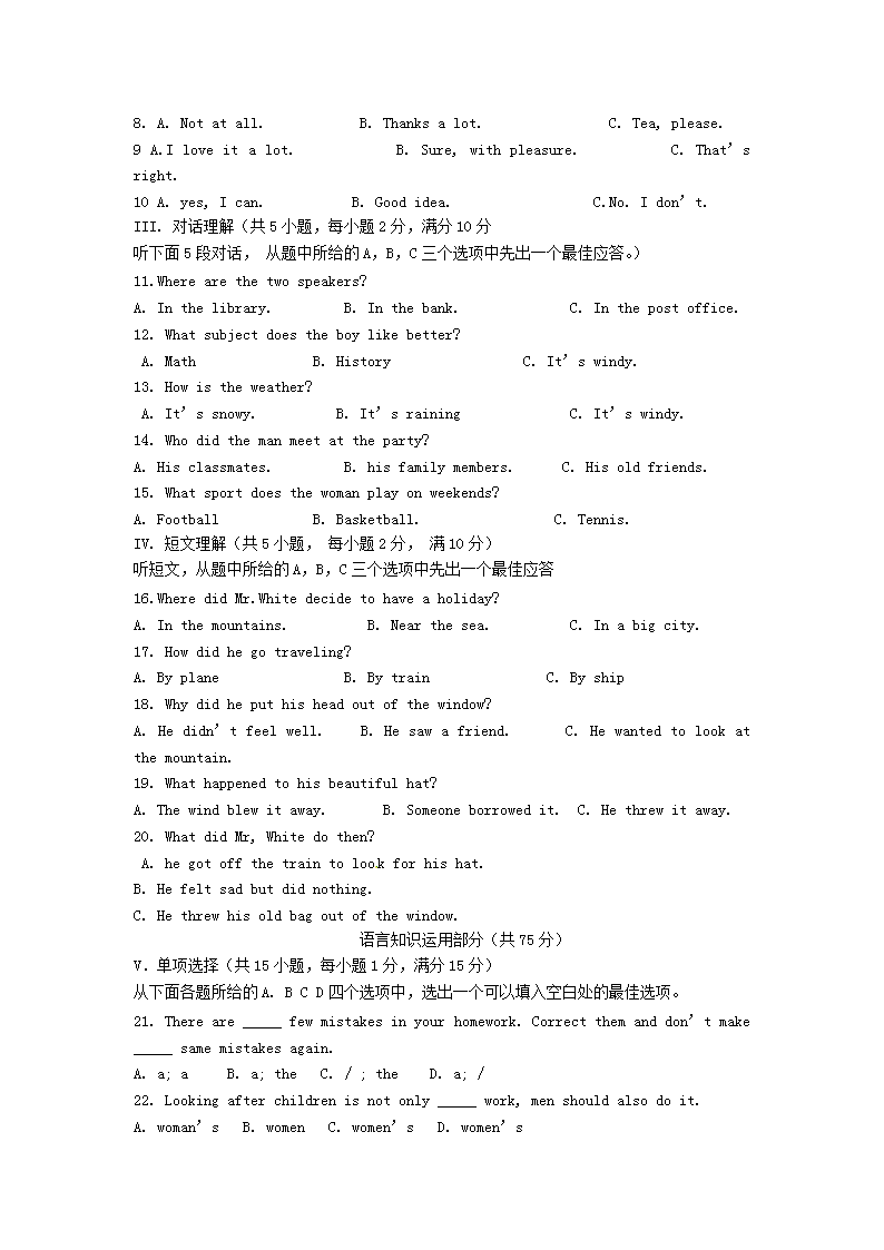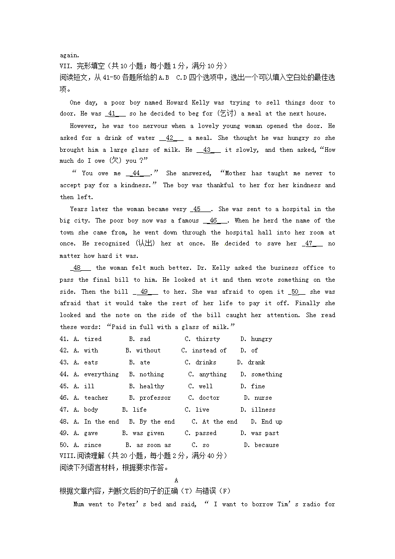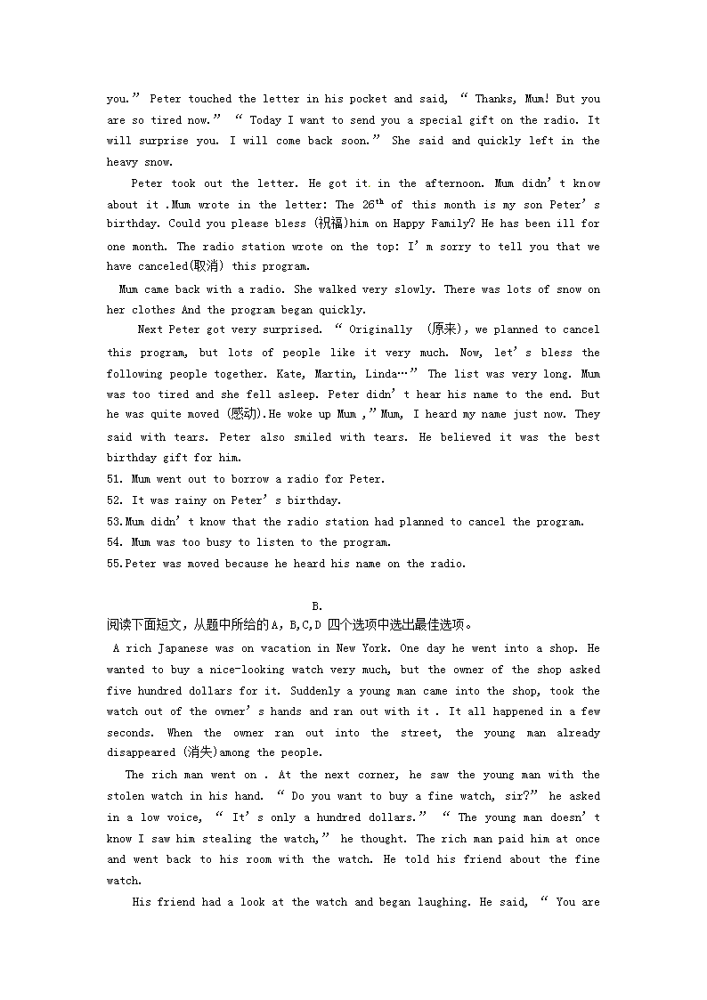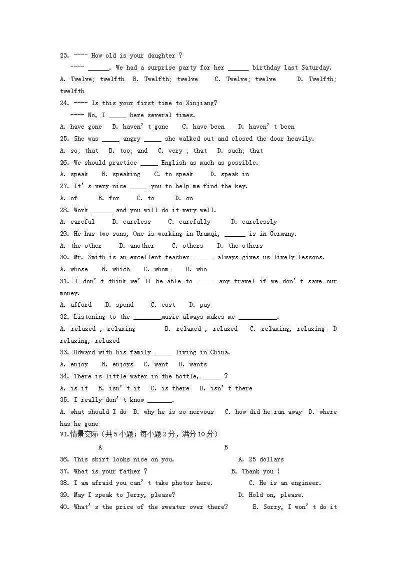 【文档预览】 无忧考网整理发布2012年新疆乌鲁木齐中考英语真题及答案(Word版),前五页预览如下: