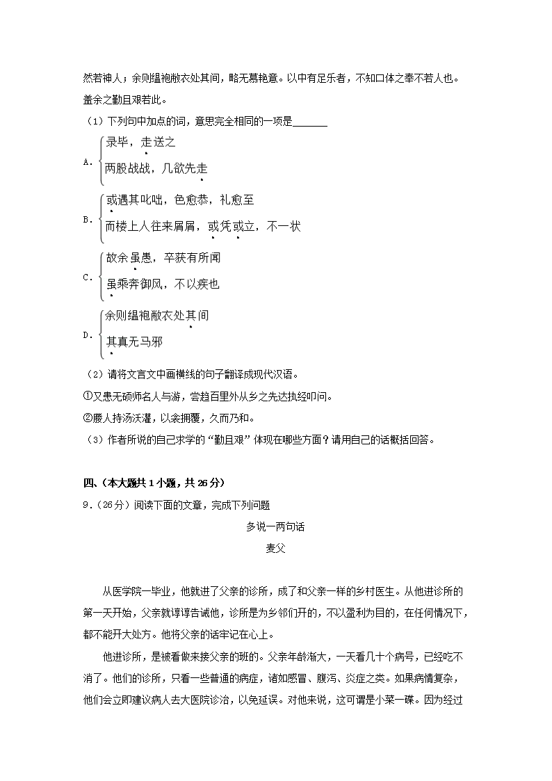 【文档预览】 无忧考网整理发布2012年新疆乌鲁木齐中考语文真题及答案(Word版),前五页预览如下: