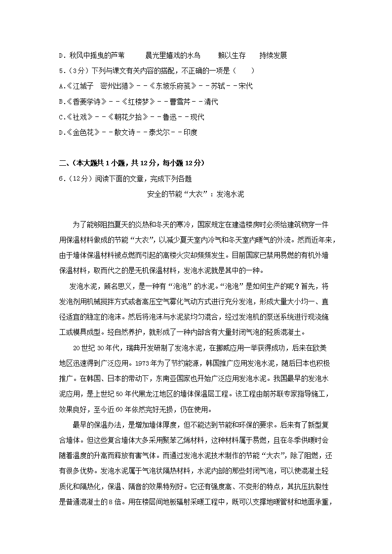 【文档名称】 2012年新疆乌鲁木齐中考语文真题及答案(Word版).doc