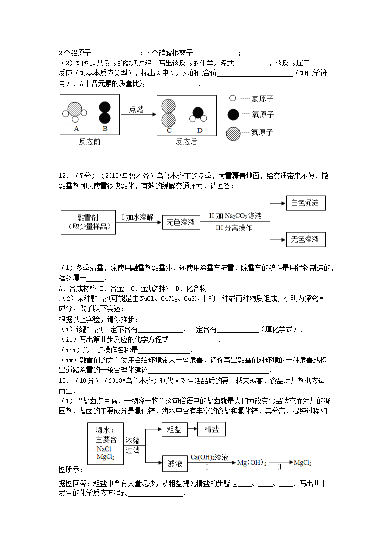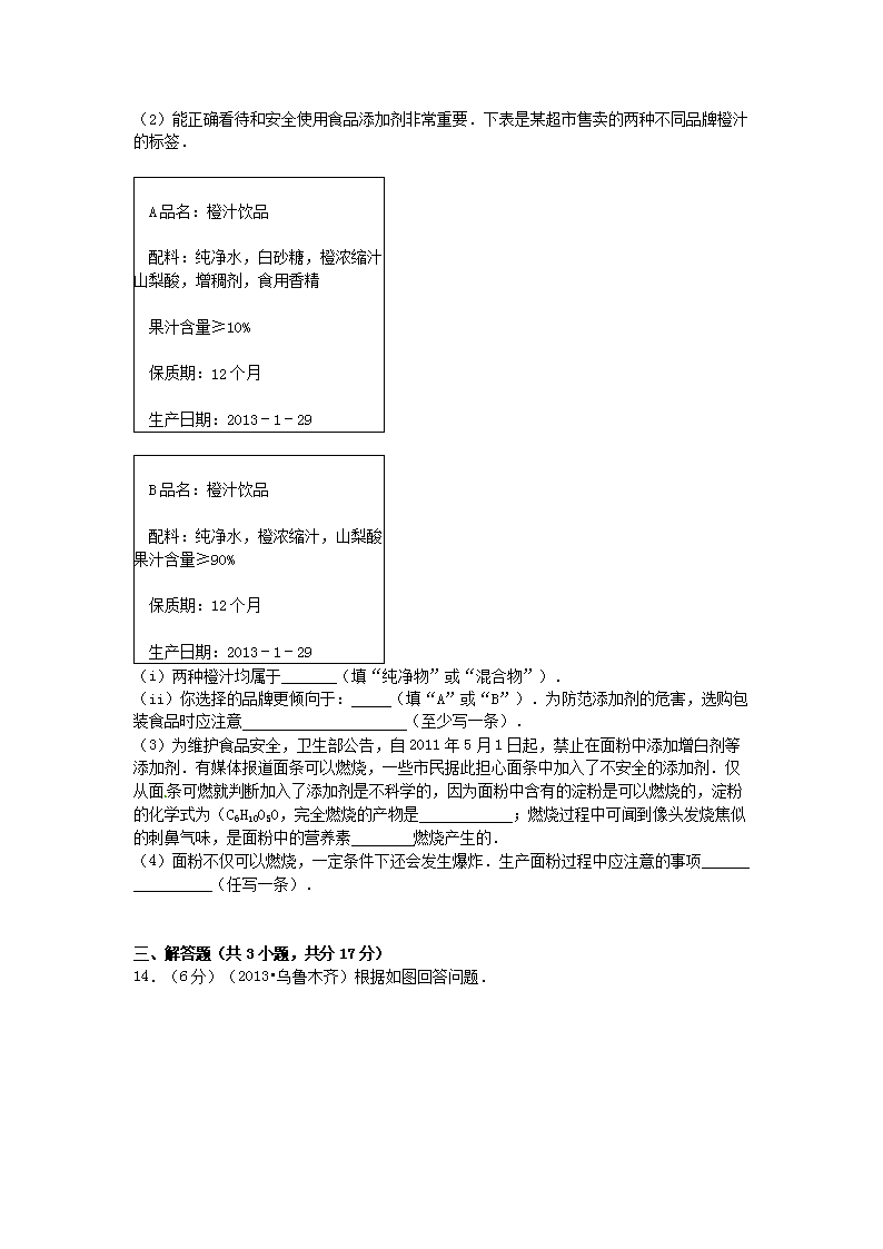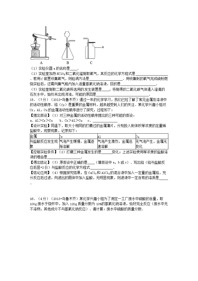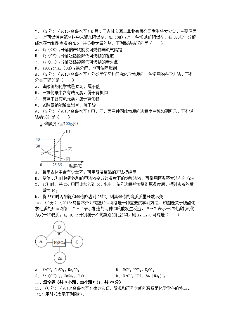 【文档名称】 2013年新疆乌鲁木齐中考化学真题及答案(Word版).doc