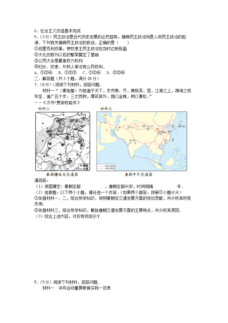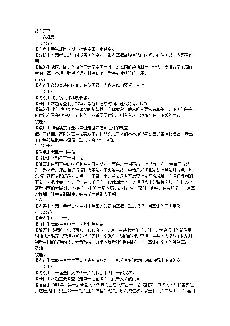 【文档名称】 2010年陕西省安康中考历史真题及答案(Word版).doc
