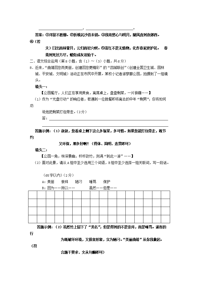 【文档名称】 2013年云南曲靖中考语文真题及答案(Word版).doc