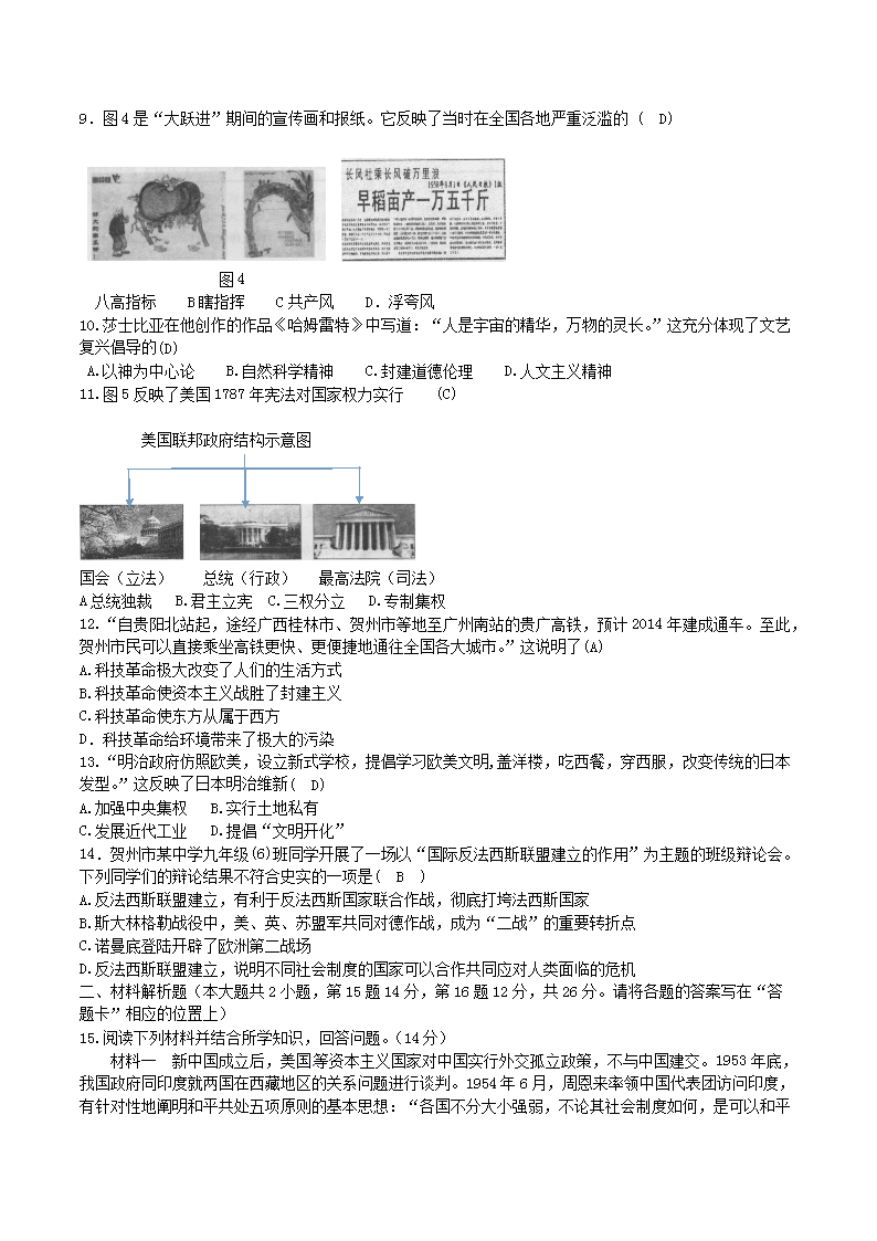 【文档名称】 2014年广西贺州市中考历史真题及答案(Word版).doc