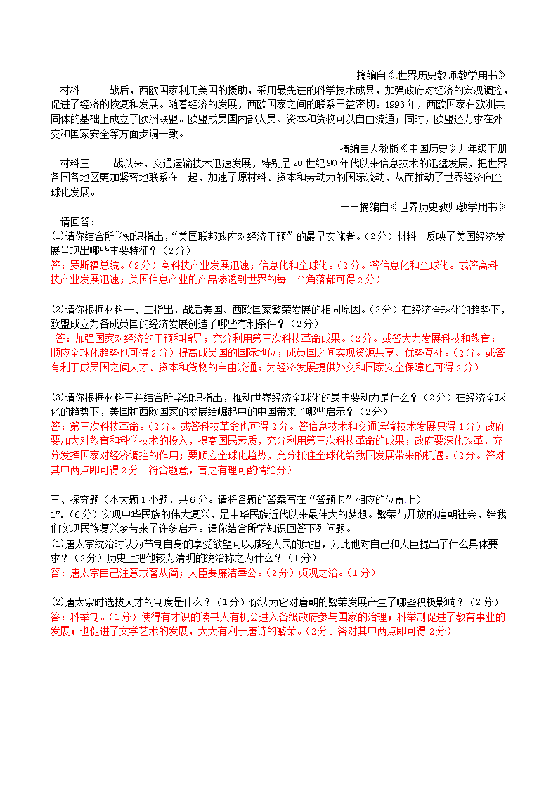 【文档预览】 无忧考网整理发布2014年广西贺州市中考历史真题及答案(Word版),前五页预览如下:
