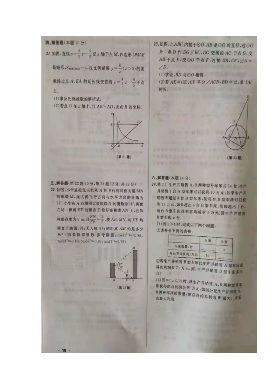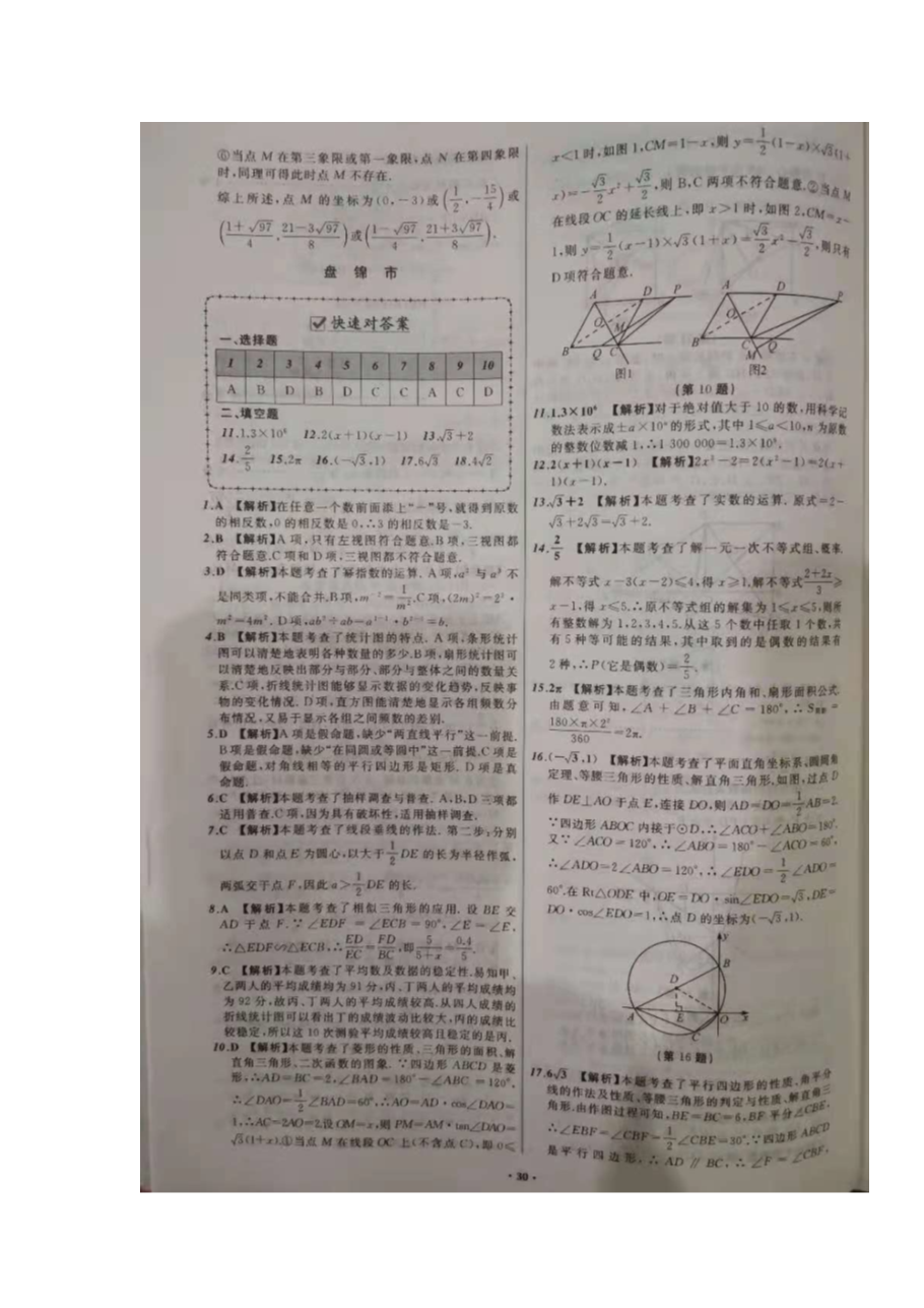 【文档预览】 无忧考网整理发布2021年辽宁省盘锦市中考数学真题及答案(图片版),前五页预览如下: