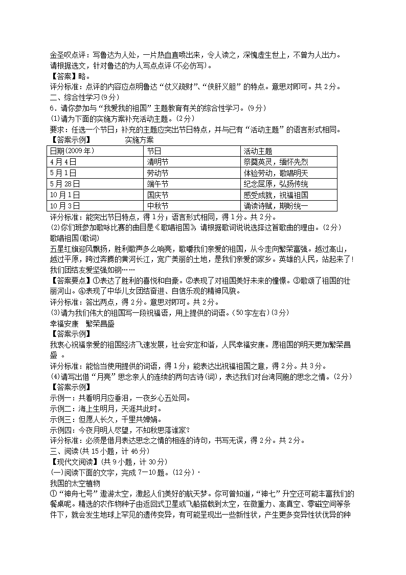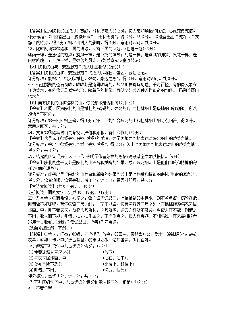 【文档预览】 无忧考网整理发布2009年陕西省渭南中考语文真题及答案(Word版),前五页预览如下: