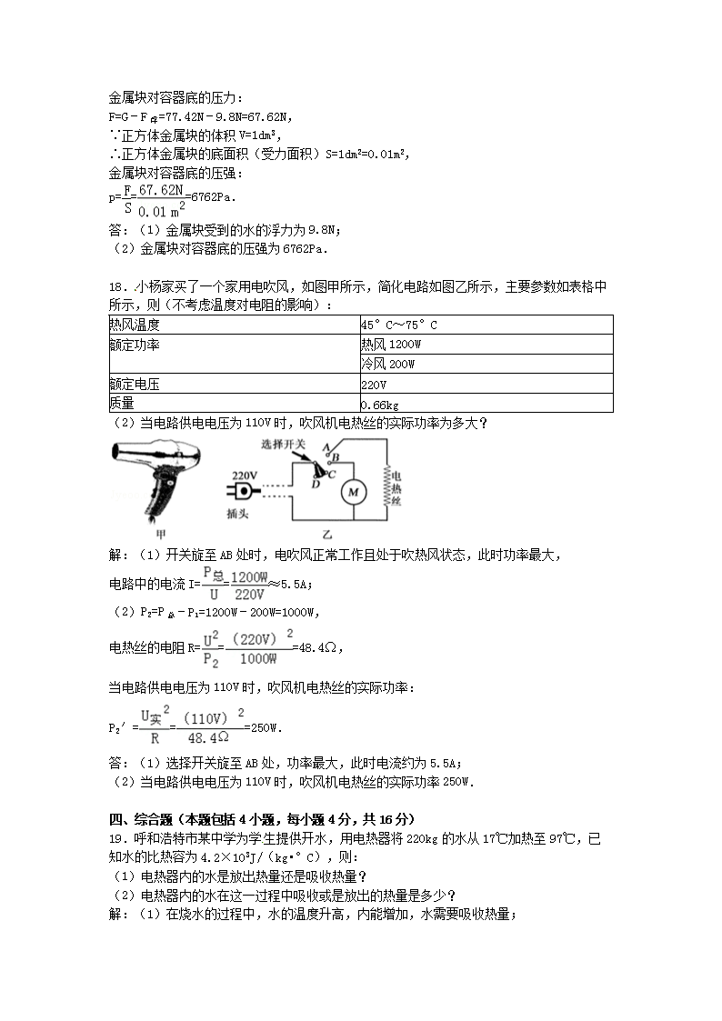 【文档名称】 2012年内蒙古呼和浩特中考物理真题及答案(Word版).doc