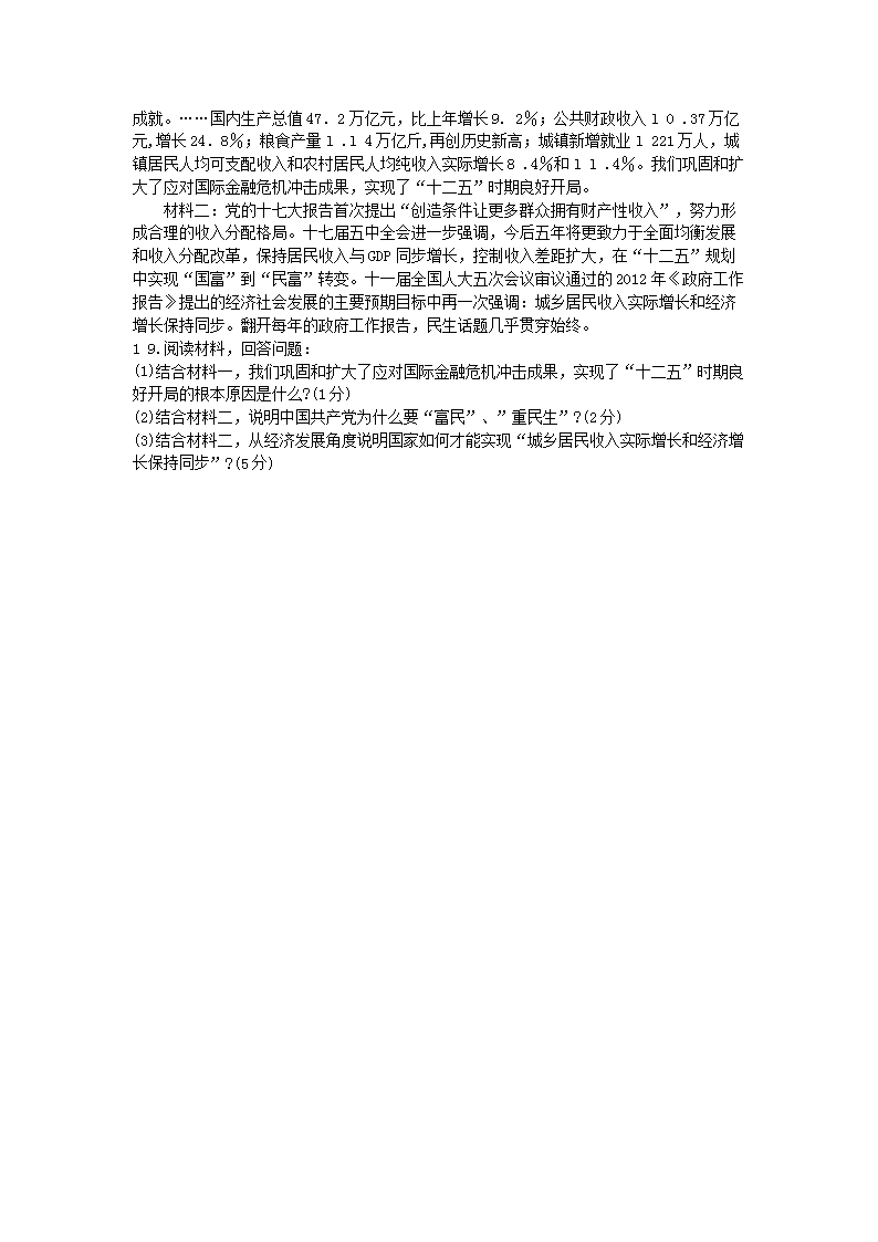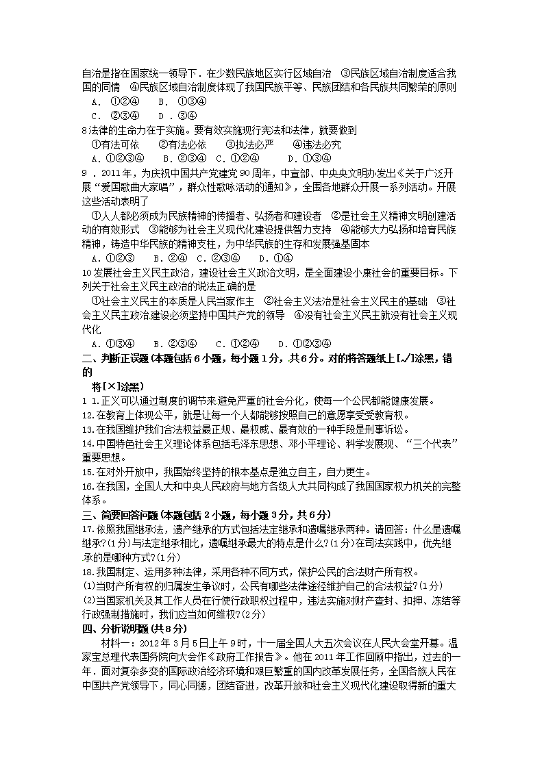 【文档名称】 2012年内蒙古呼和浩特中考政治真题及答案(Word版).doc