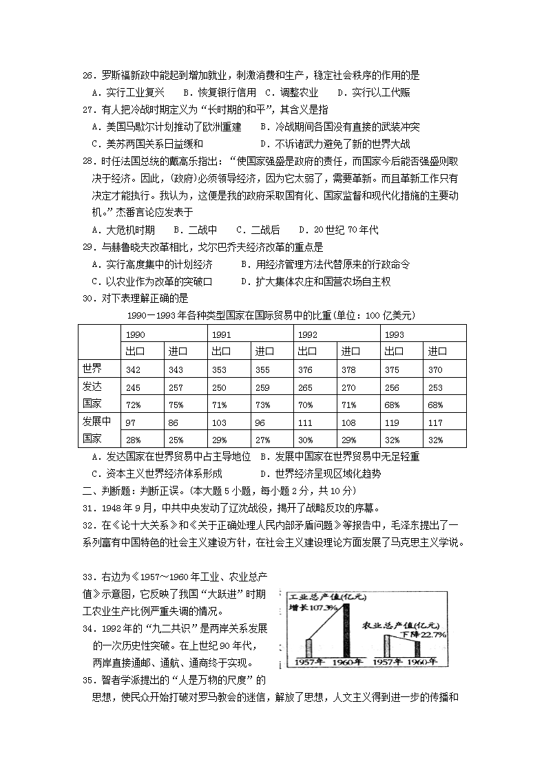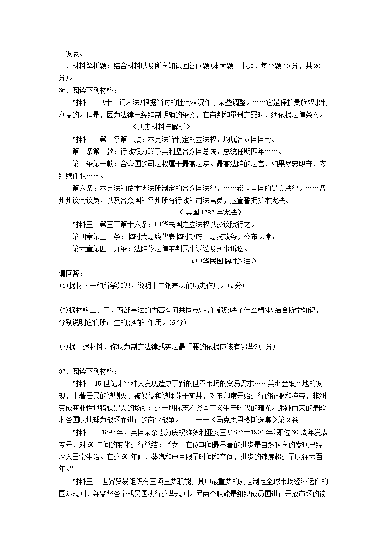 【文档预览】 无忧考网整理发布2011年江苏常州普通高中会考历史真题及答案(Word版),前五页预览如下: