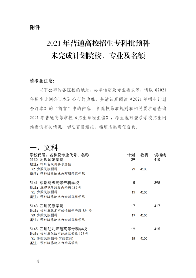 2021四川专科批预科未完成计划院校征集志愿的通知