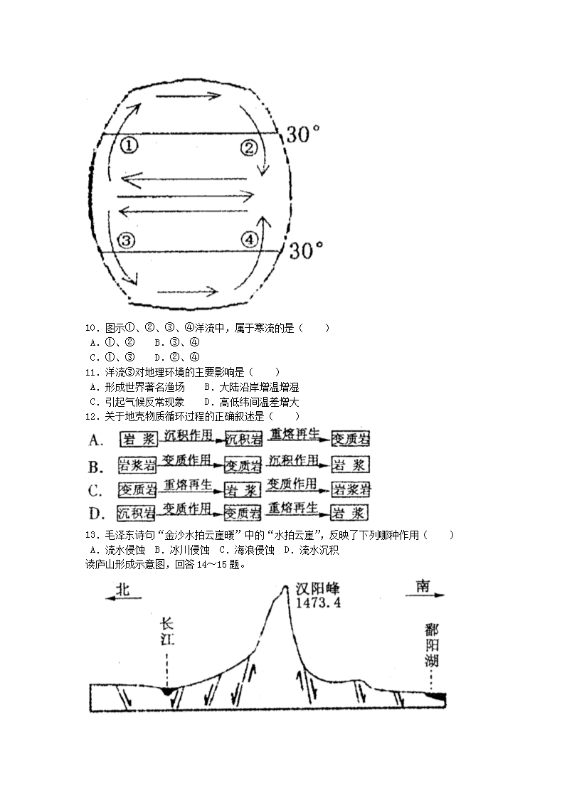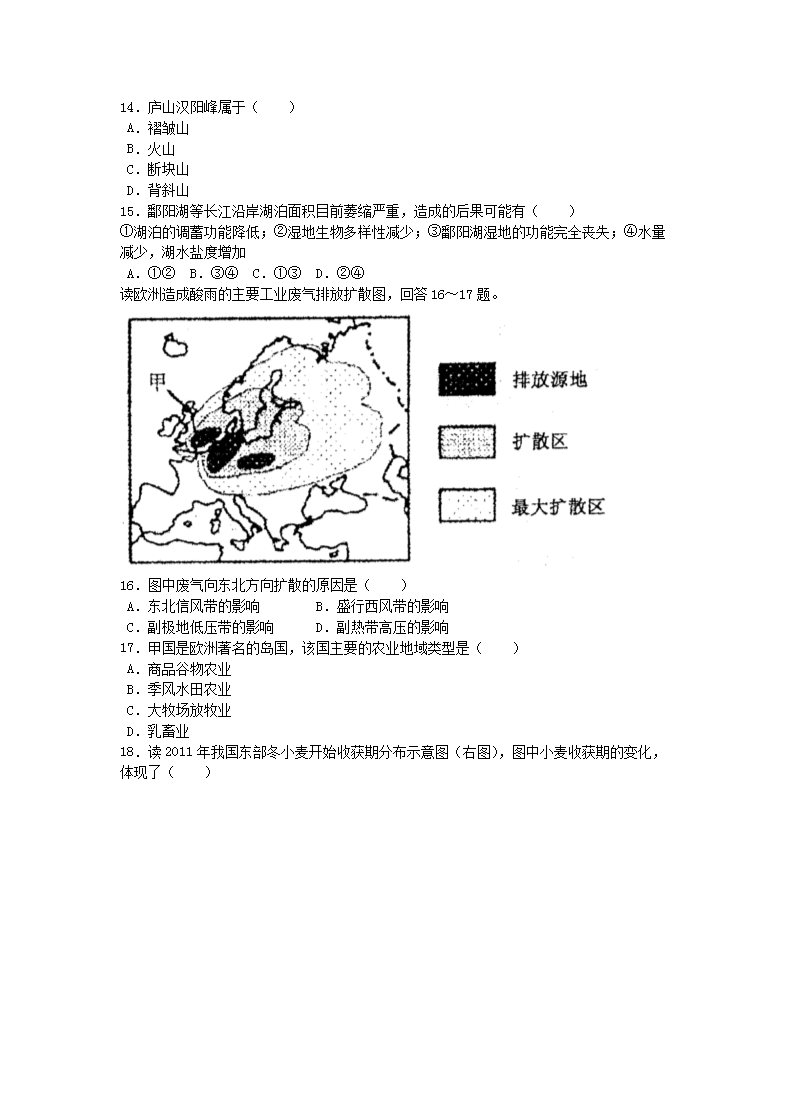 【文档名称】 2012年江苏苏州普通高中会考地理真题及答案(Word版).doc
