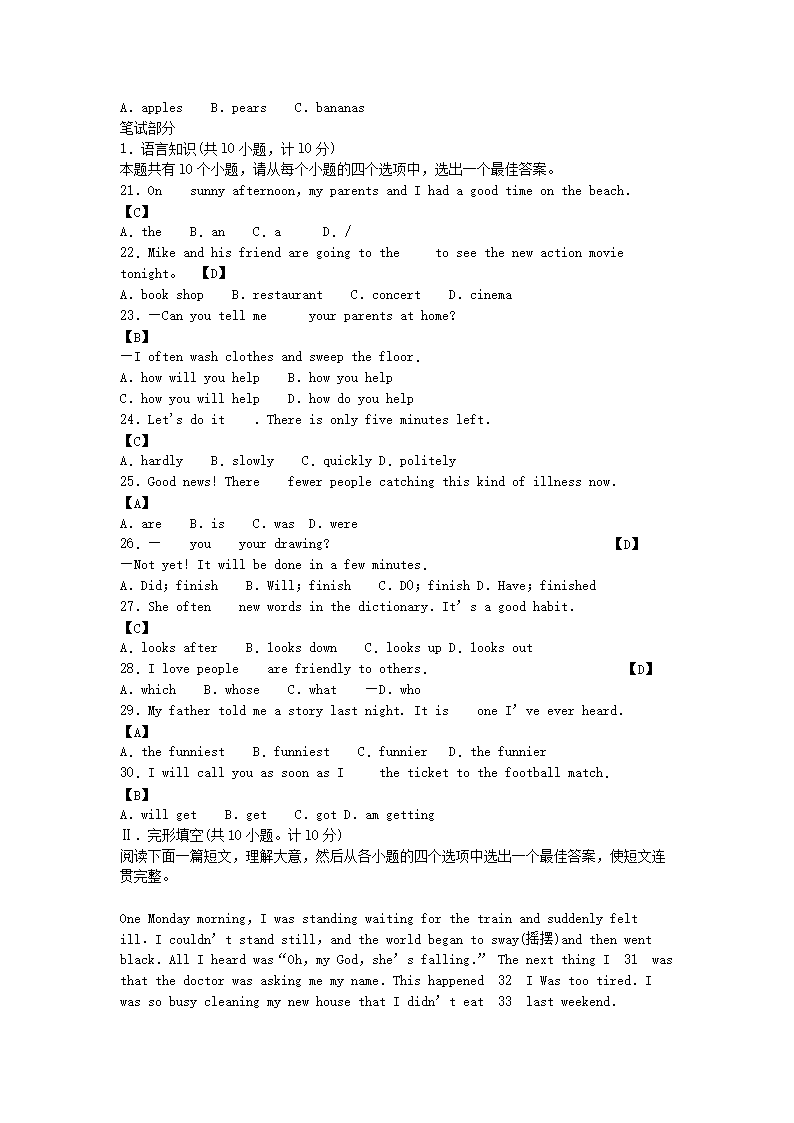 【文档名称】 2009年陕西省渭南中考英语真题及答案(Word版).doc