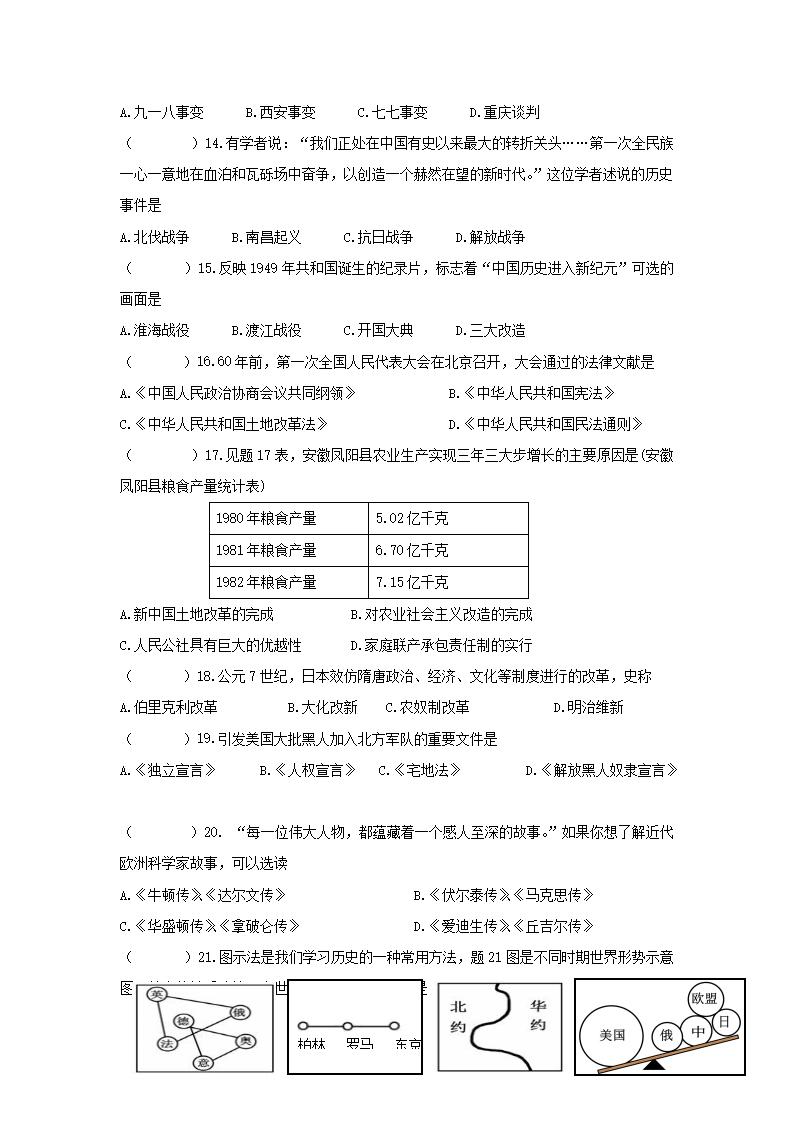 【文档名称】 2014广东省肇庆市中考历史真题及答案(Word版).doc