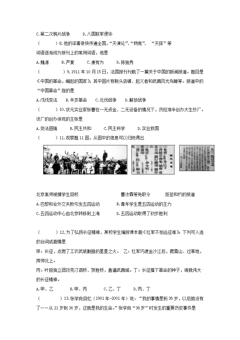 【文档名称】 2014广东省珠海市中考历史真题及答案(Word版).doc