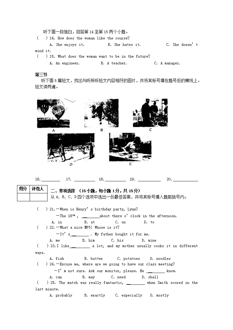 【文档预览】 无忧考网整理发布2009年河南鹤壁中考英语真题及答案(Word版),前五页预览如下: