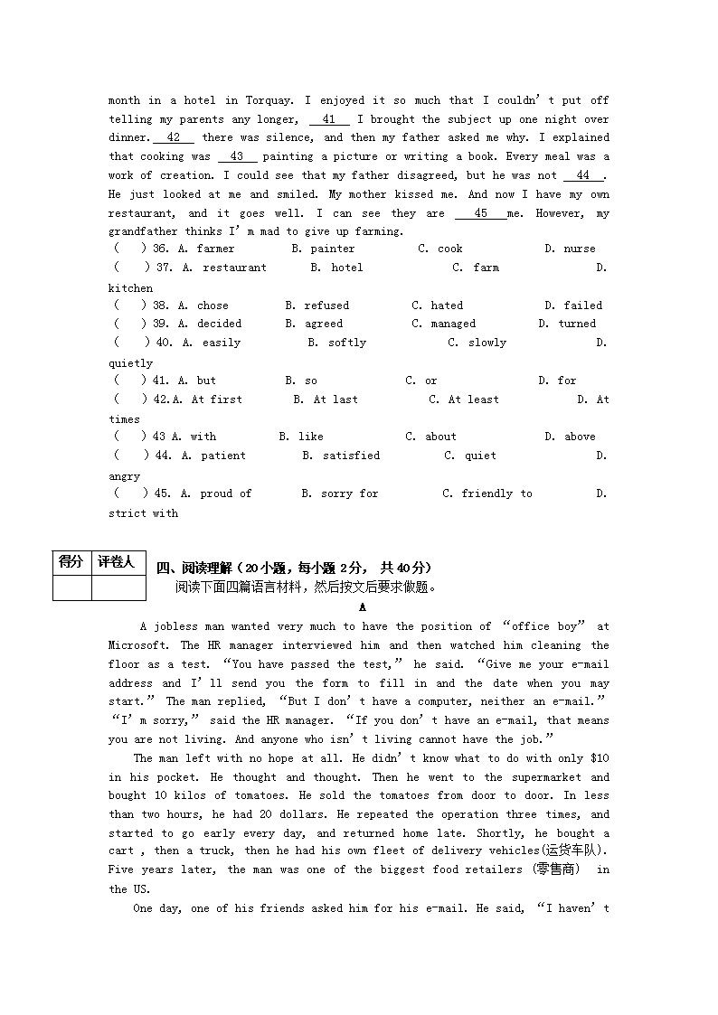 【文档名称】 2009年河南鹤壁中考英语真题及答案(Word版).doc