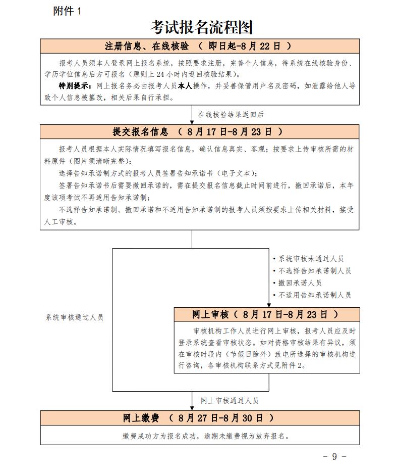(一)本项考试报名证明事项推行告知制。报考人员须确定本人符合报名条件,填报的信息均真实、客观,并签署《专业技术人员资格考试报名证明事项告知制告知书》(电子文本),切勿委托他人或机构填写报名信息、代替本人作出书面(含电子文本)。考试组织机构将在考前、考中、考后对报考人员的内容开展核查,成绩合格拟取得资格证书人员信息将在网站进行公示,接受社会监督。不实填报、虚假的人员将被记入专业技术人员资格考试诚信档案库,纳入全国信用信息共享平台,接受“一处失信、处处受限”的联合惩戒处罚,涉嫌犯罪的,移送司法机关处理。