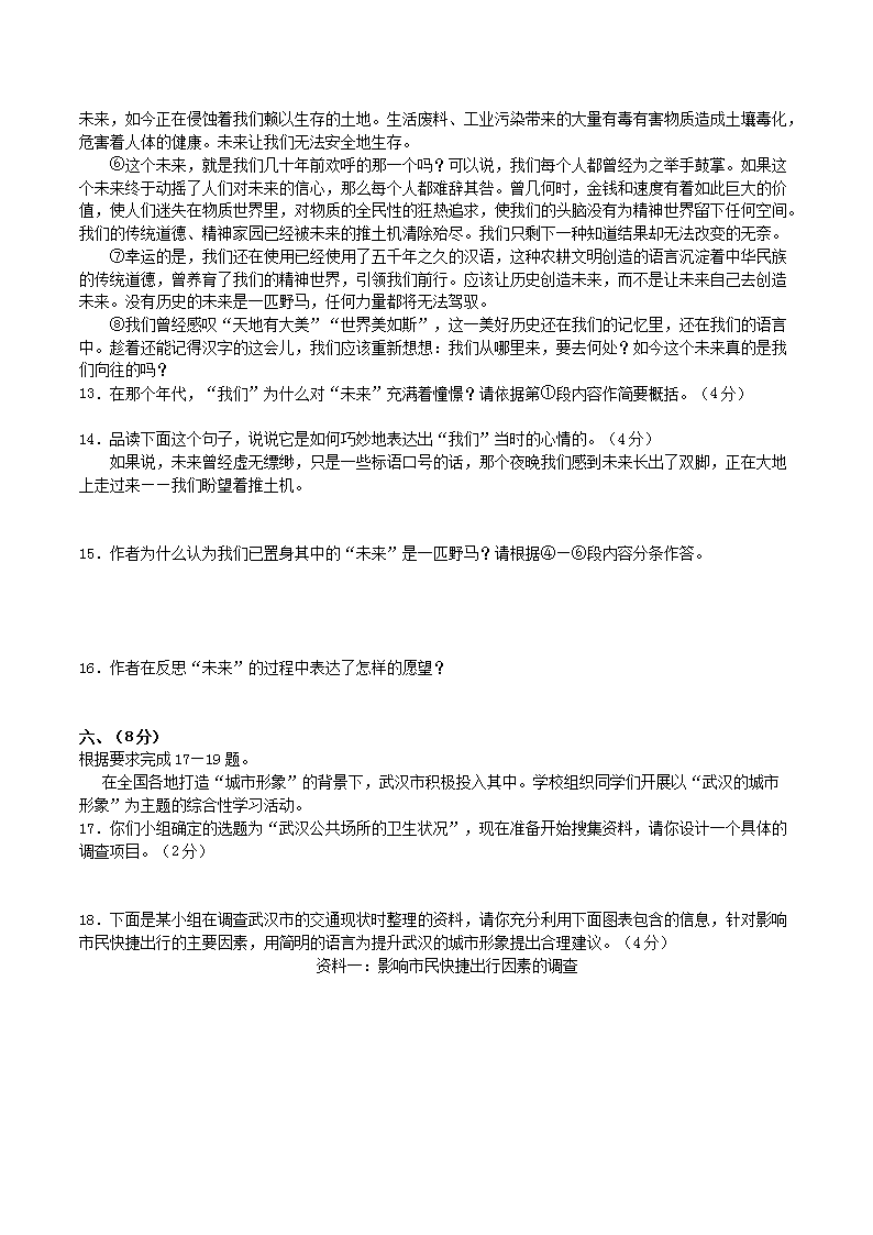 【文档名称】 2013年湖北省武汉市中考语文真题及答案(Word版).doc
