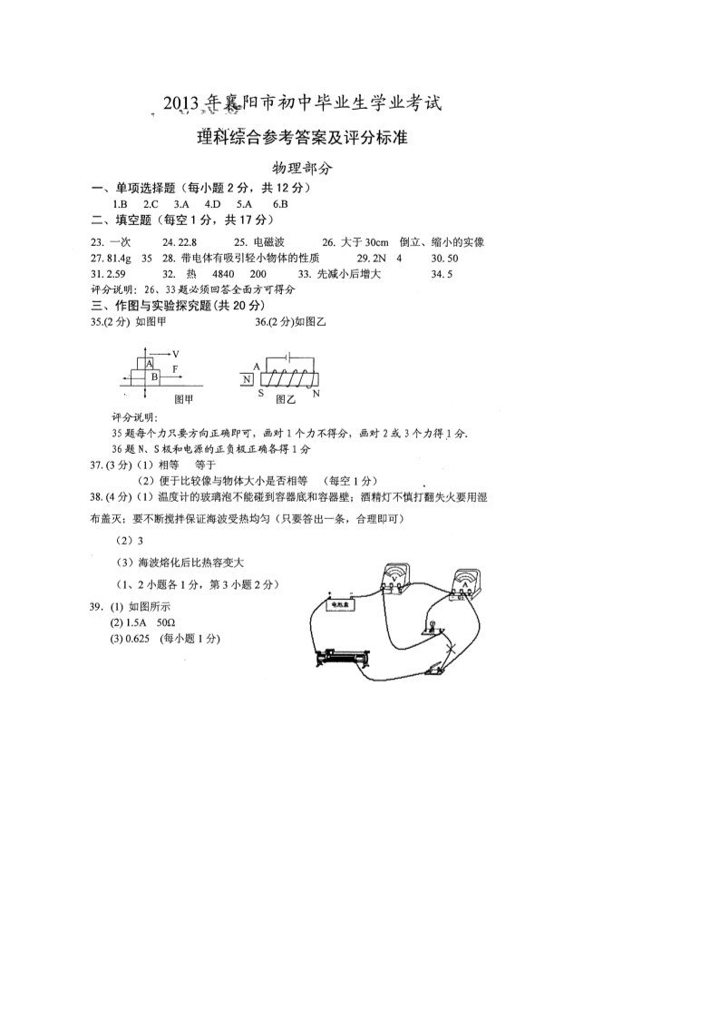 【文档名称】 2013年湖北省襄阳市中考物理真题及答案(Word版).doc