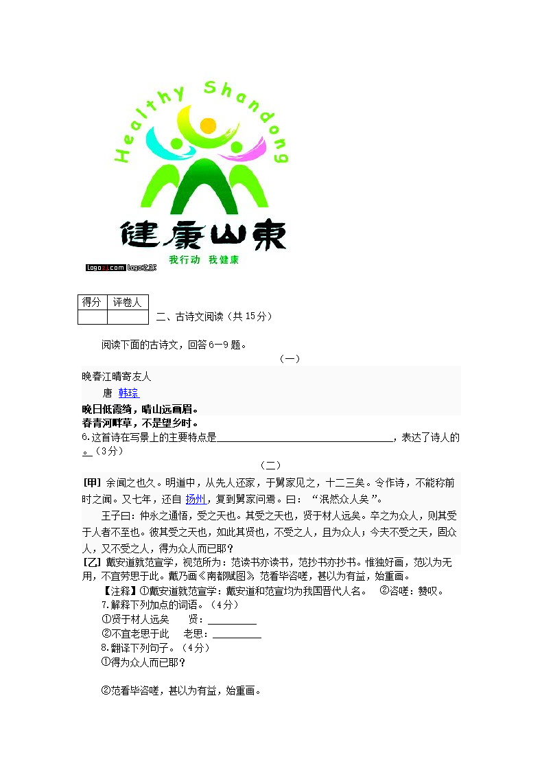 【文档名称】 2011山东省济宁市中考语文真题及答案(Word版).doc