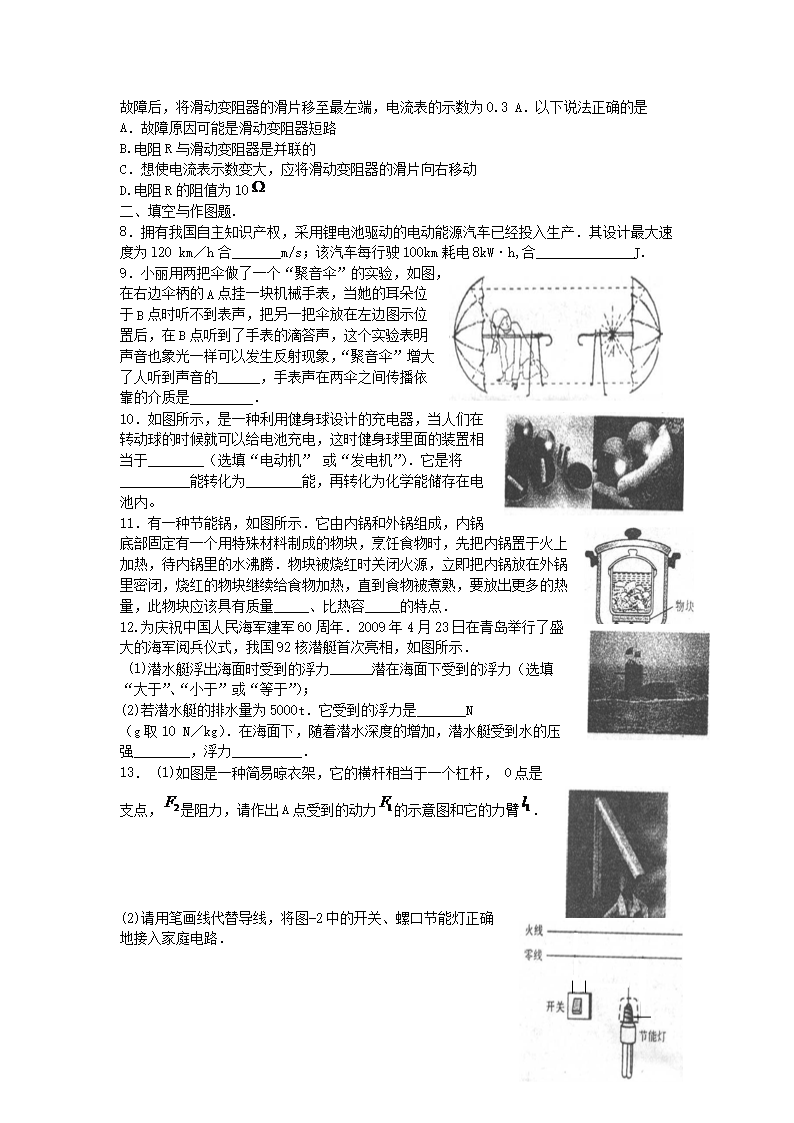 【文档名称】 2009年陕西省商洛中考物理真题及答案(Word版).doc