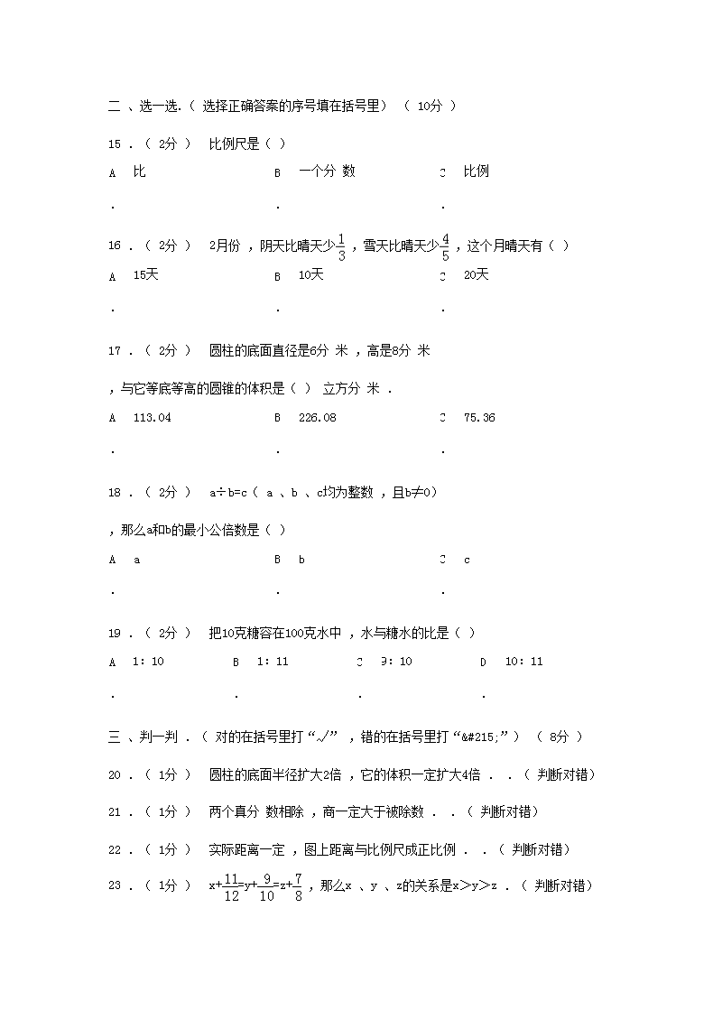 【文档名称】 2020年天津小升初数学真题及答案(Word版).doc