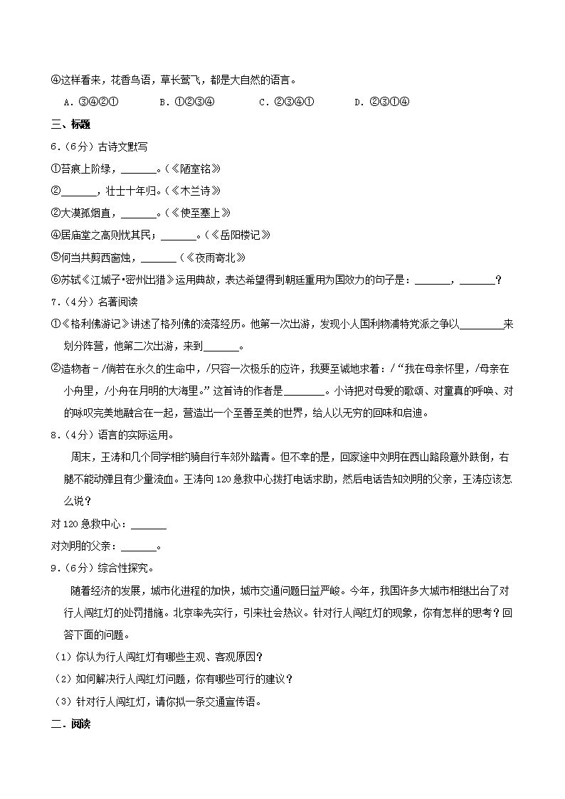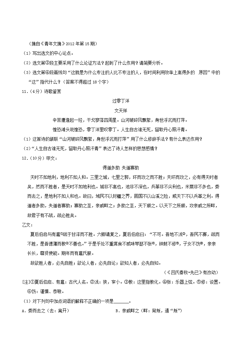 【文档名称】 2013年湖南省怀化市中考语文真题及答案(Word版).doc