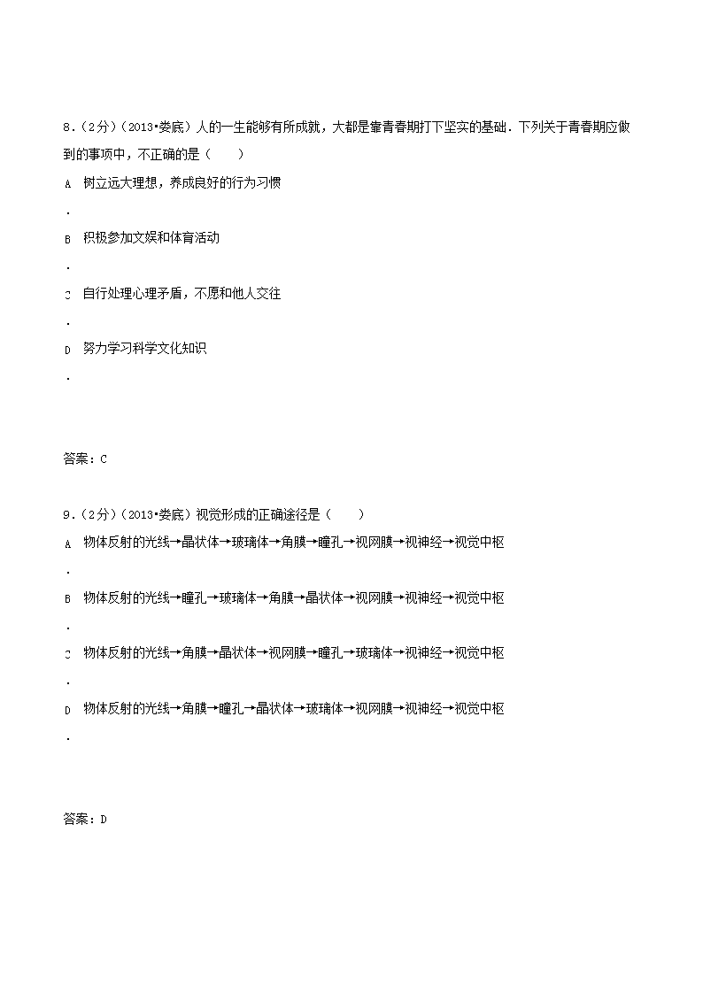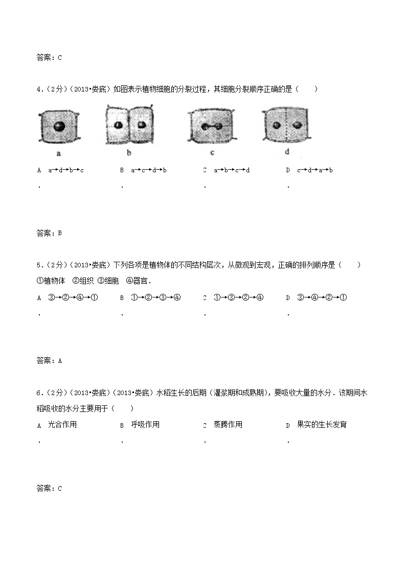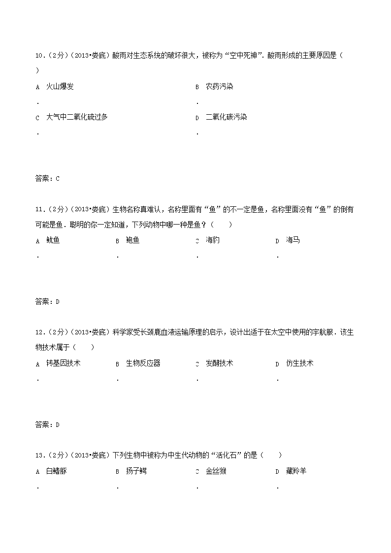 【文档名称】 2013年湖南省娄底市中考生物真题及答案(Word版).doc