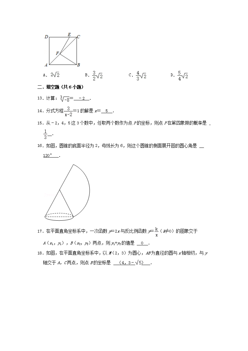 【文档预览】 无忧考网整理发布2021年广西河池中考数学真题及答案(Word版),前五页预览如下: