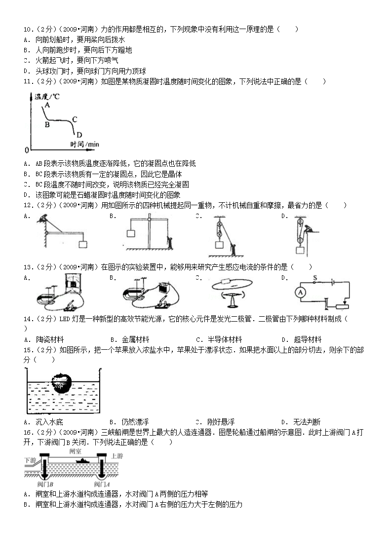 【文档预览】 无忧考网整理发布2009年河南南阳中考物理真题及答案(Word版),前五页预览如下: