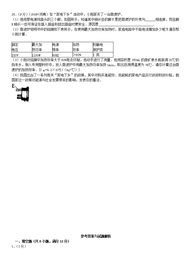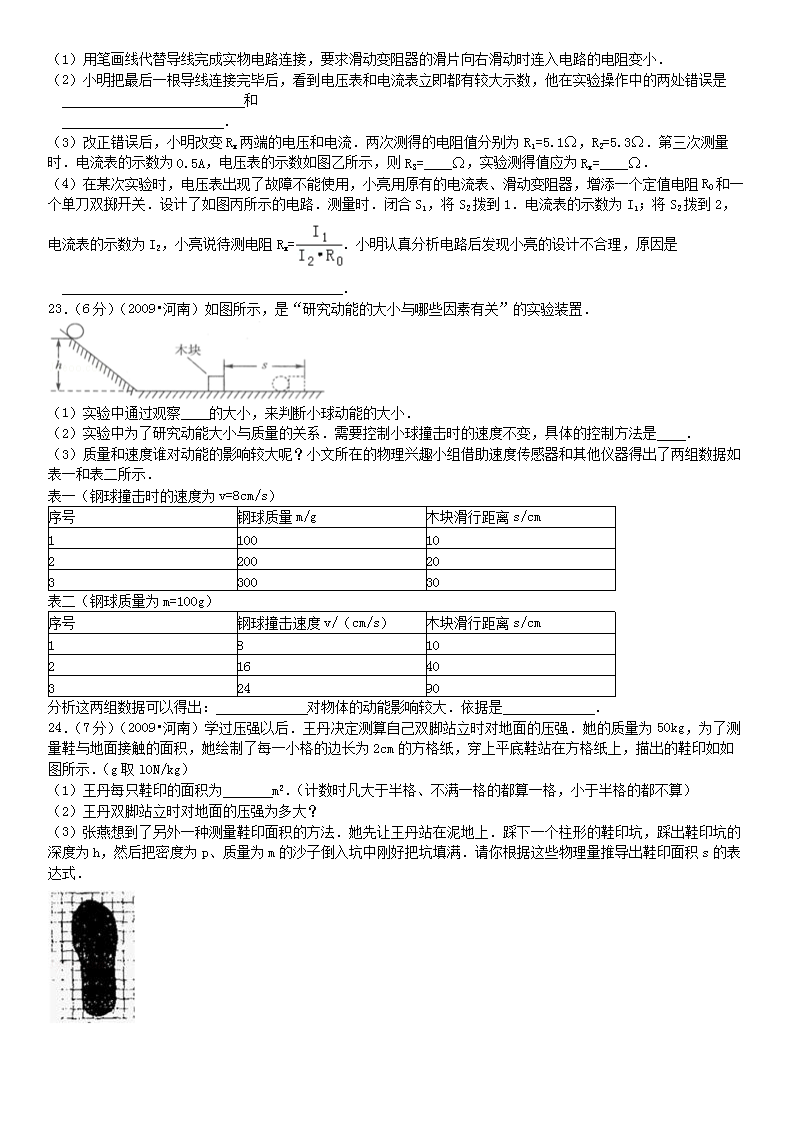 【文档名称】 2009年河南驻马店中考物理真题及答案(Word版).doc