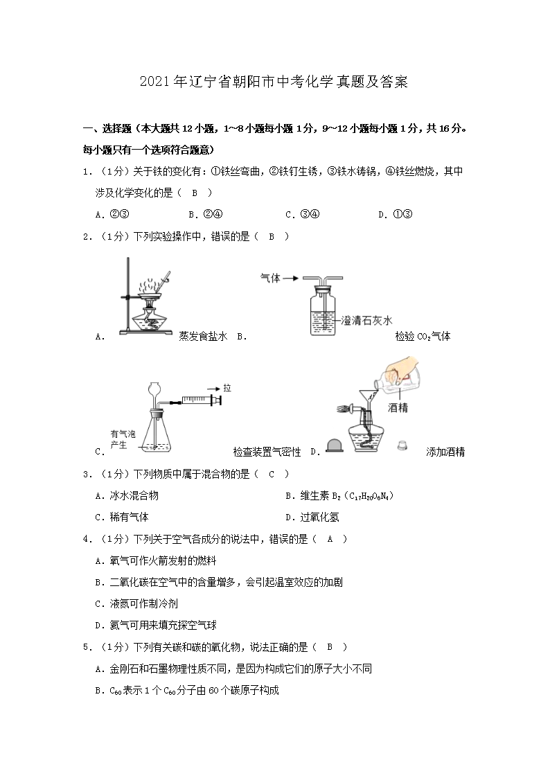 【文档名称】 2021年辽宁省朝阳市中考化学真题及答案(Word版).doc