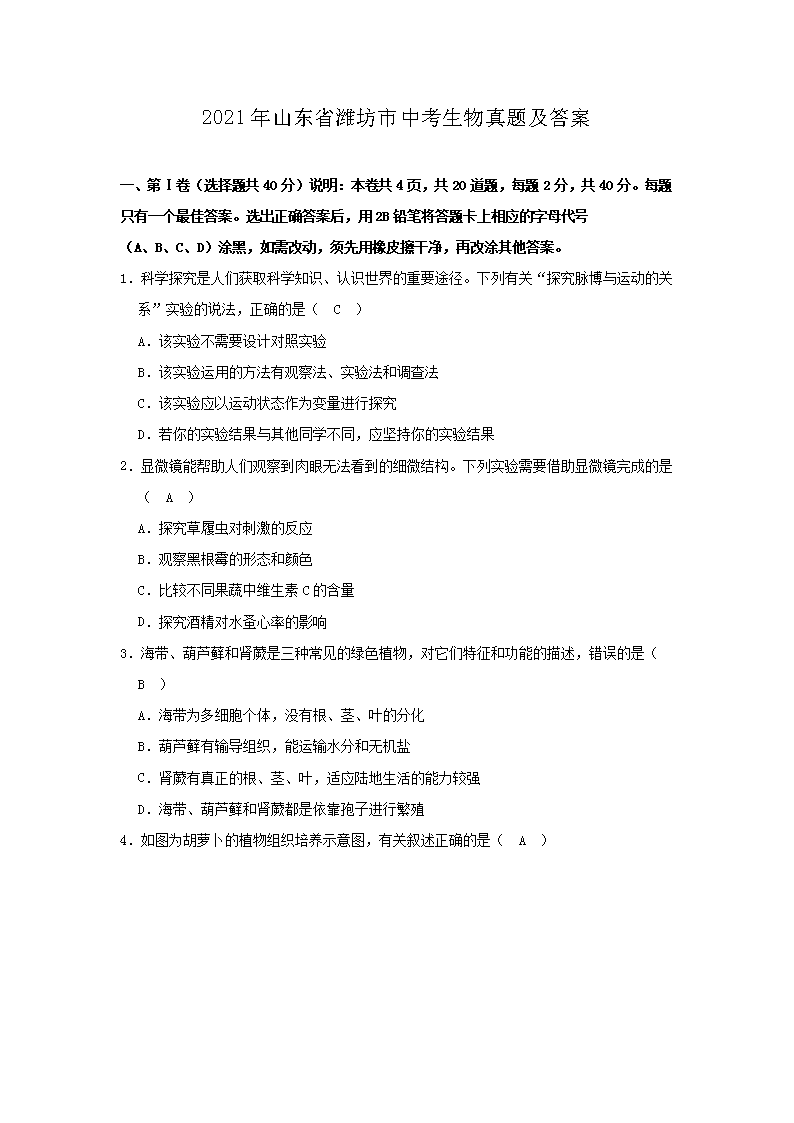 【文档预览】 无忧考网整理发布2021年山东省潍坊市中考生物真题及答案(Word版),前五页预览如下: