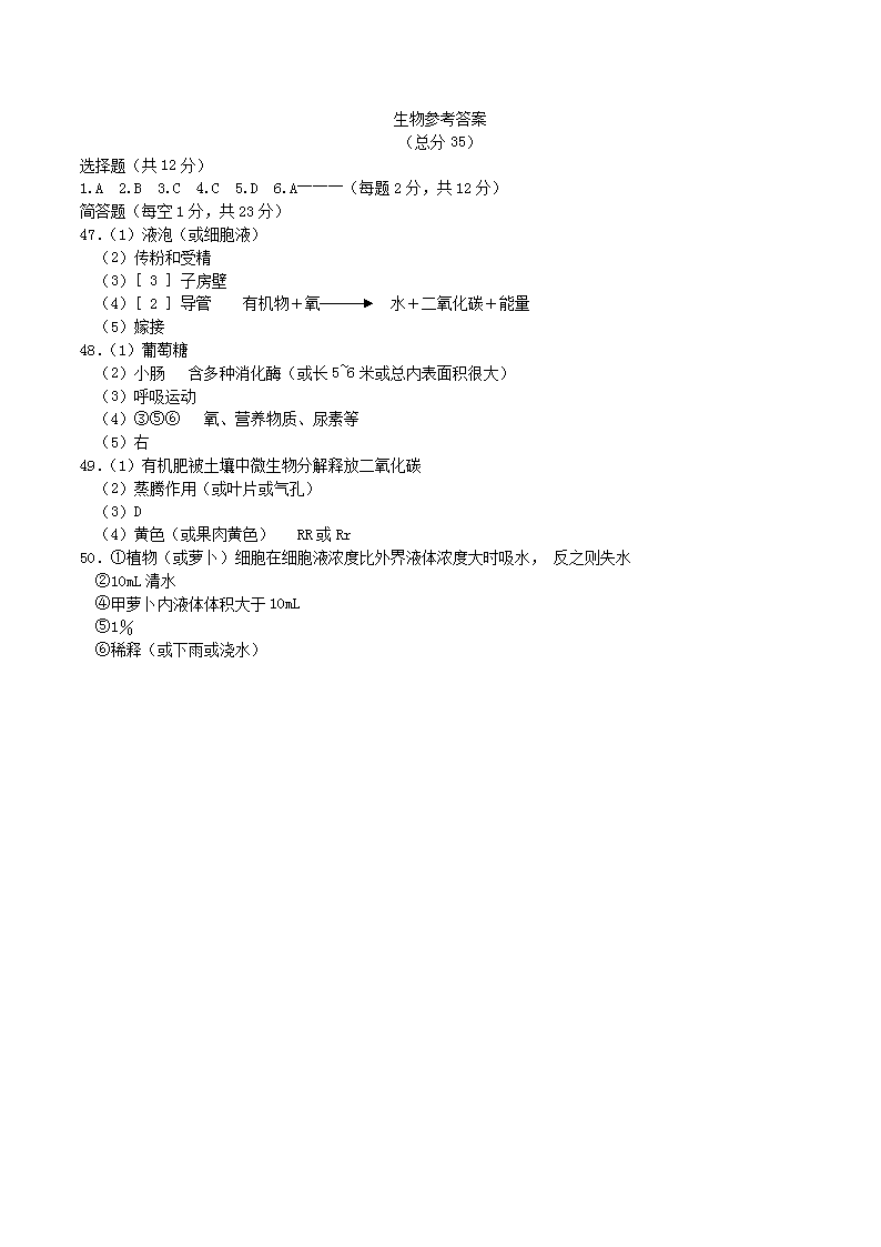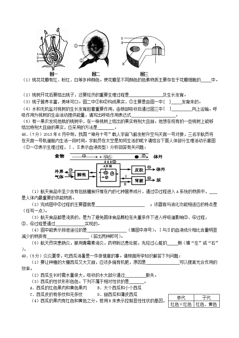 【文档名称】 2013年湖北省黄冈市中考生物真题及答案(Word版).doc