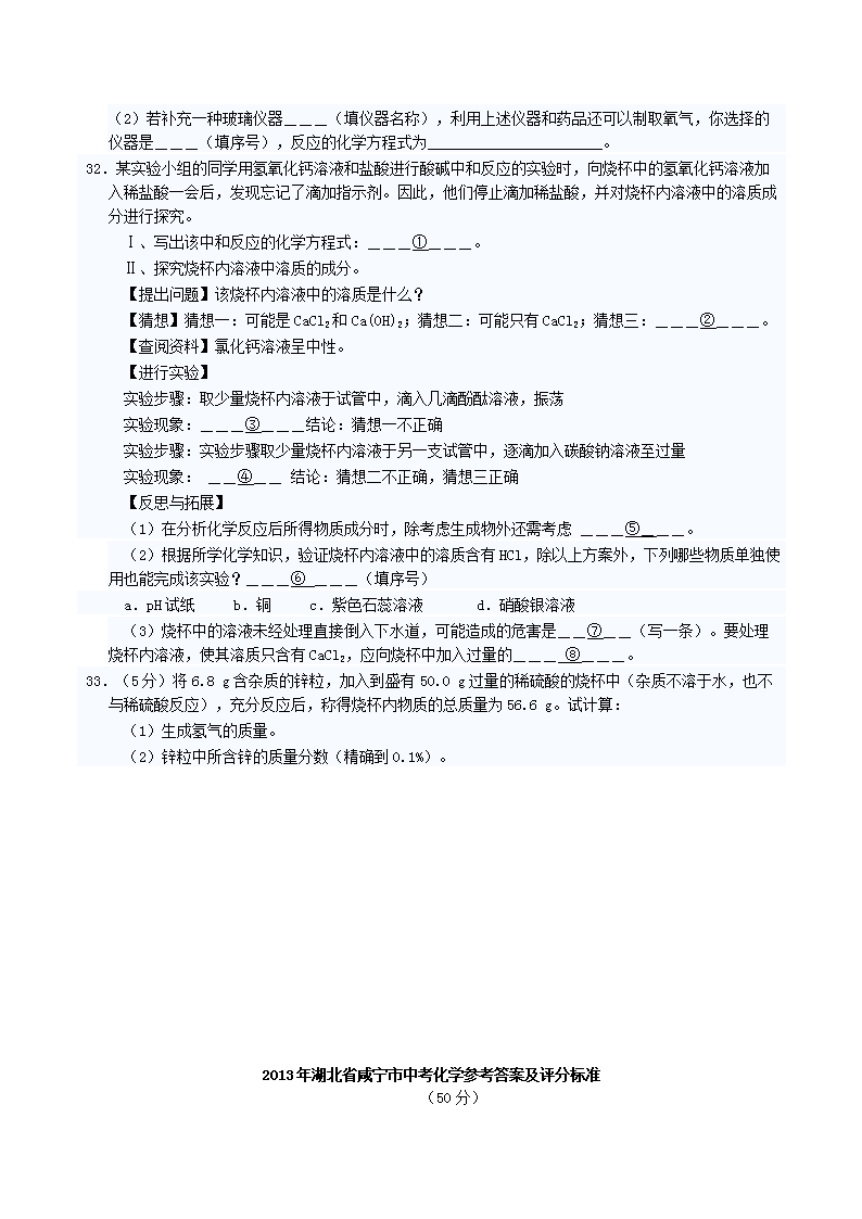 【文档名称】 2013年湖北省咸宁市中考化学真题及答案(Word版).doc