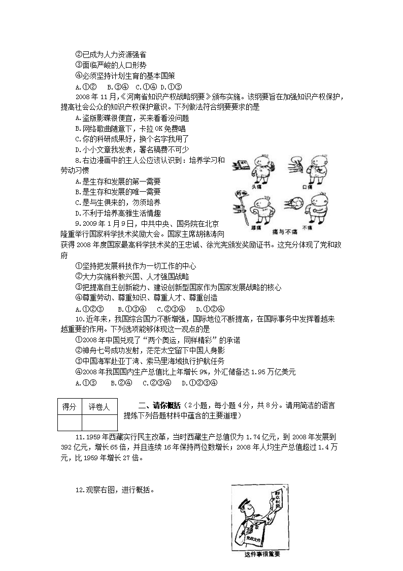 【文档名称】 2009年河南濮阳中考道德与法治真题及答案(Word版).doc