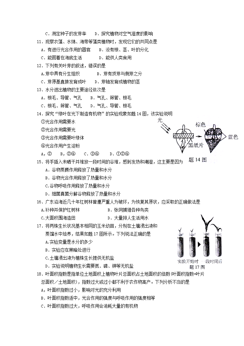 【文档名称】 2014年广东省揭阳市中考生物真题及答案(Word版).doc