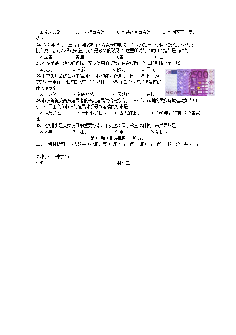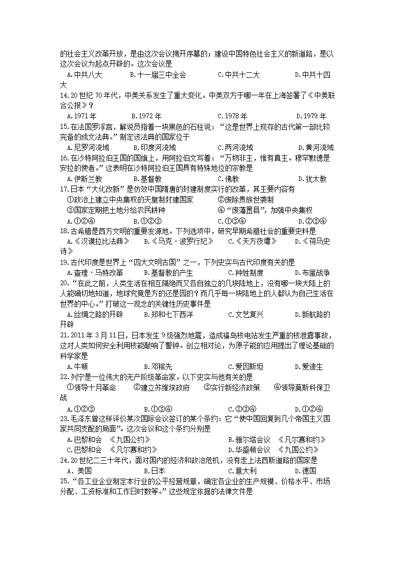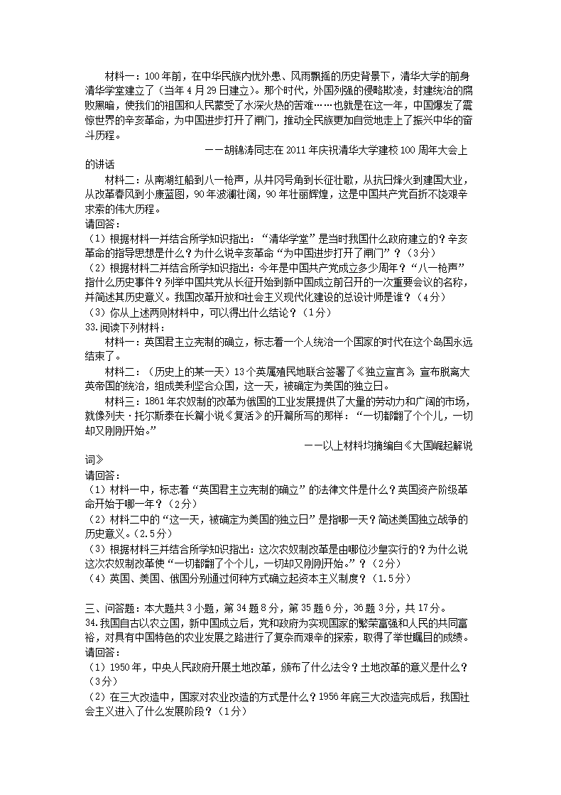 【文档名称】 2011山东省威海市中考历史真题及答案(Word版).doc