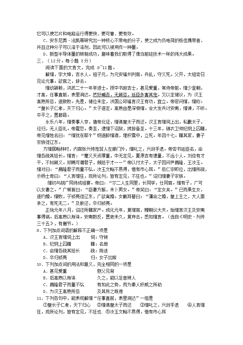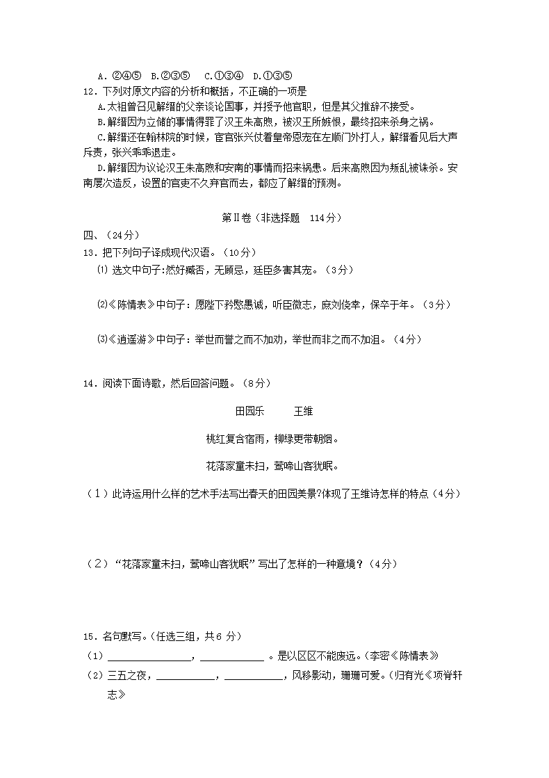 【文档名称】 2012年山东普通高中会考语文真题及答案(Word版).doc