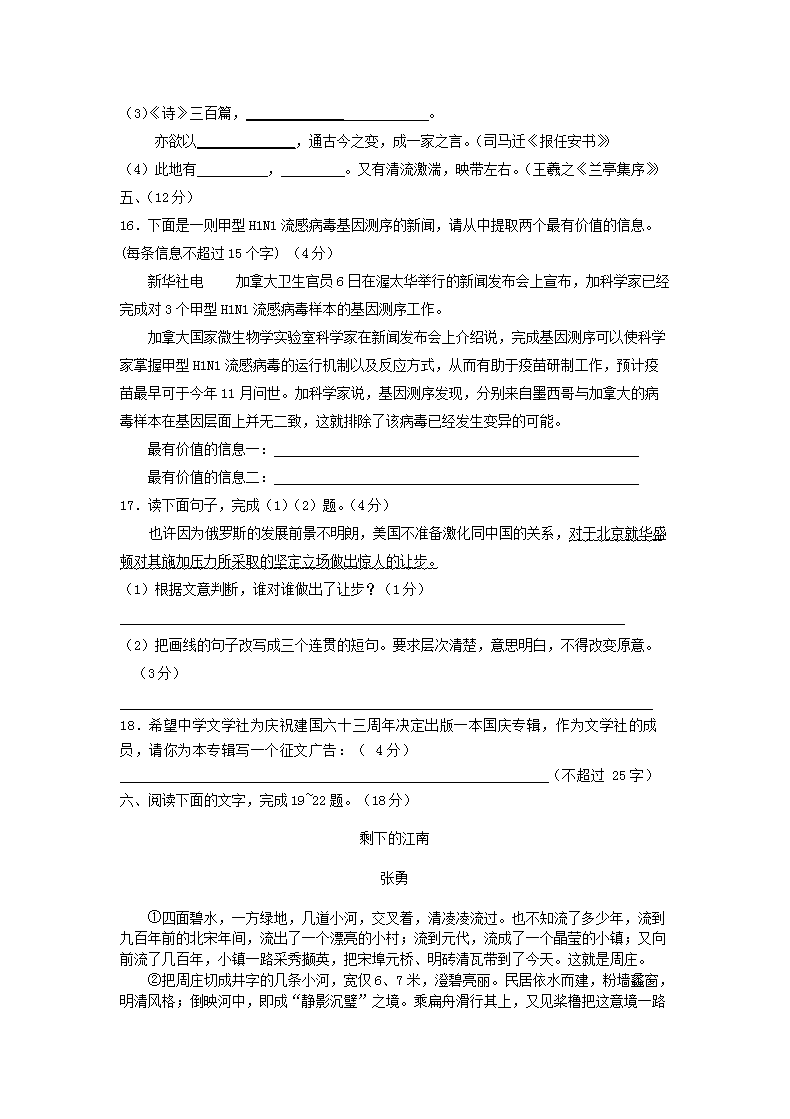 【文档预览】 无忧考网整理发布2012年山东普通高中会考语文真题及答案(Word版),前五页预览如下: