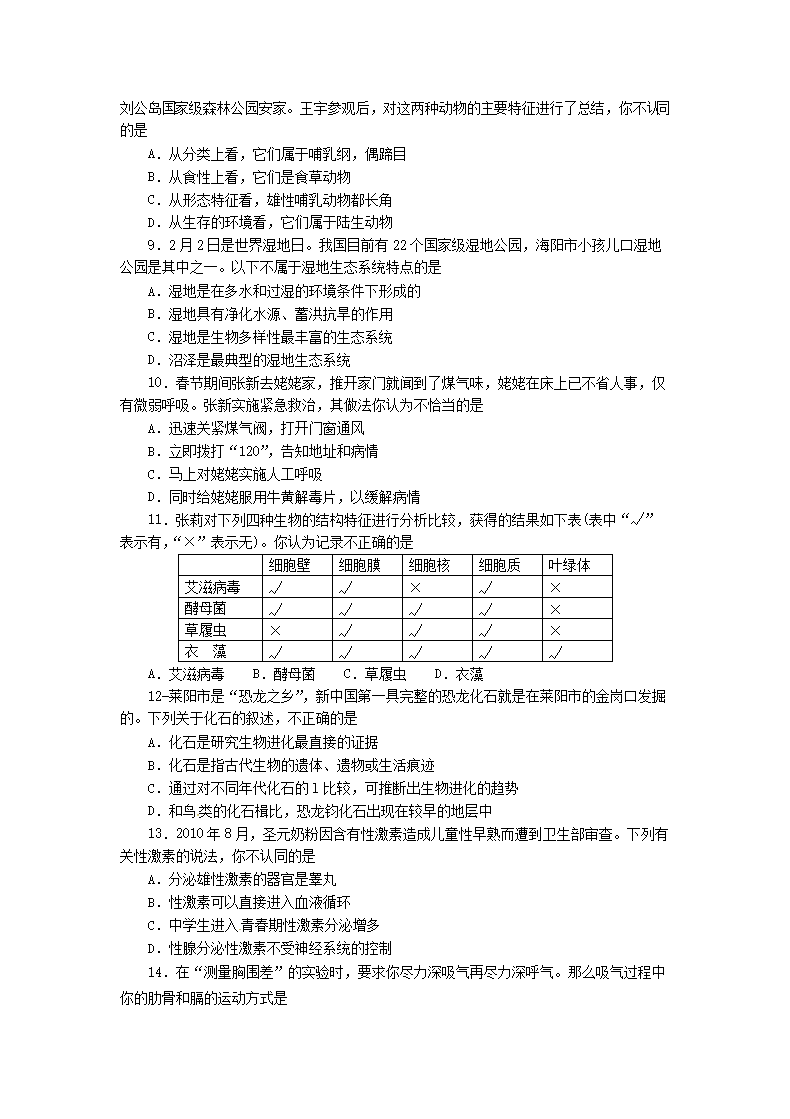 【文档预览】 无忧考网整理发布2011山东省烟台市中考生物真题及答案(Word版),前五页预览如下: