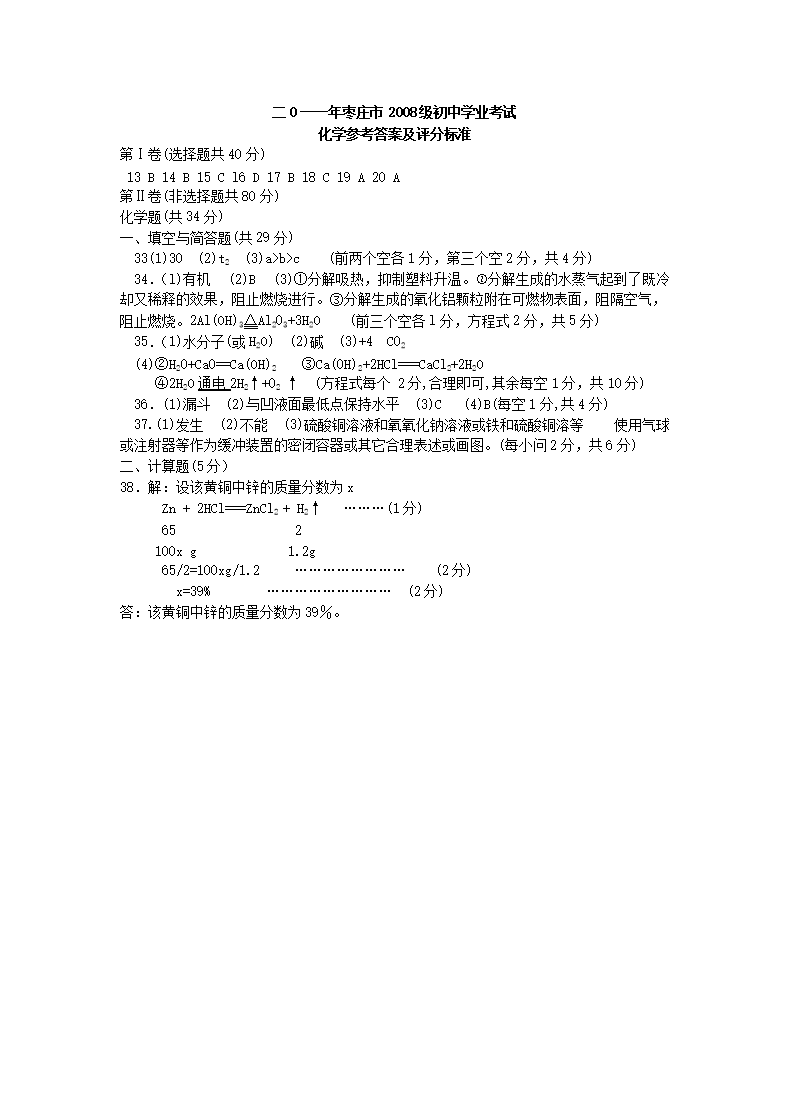 【文档预览】 无忧考网整理发布2011山东省枣庄市中考化学真题及答案(Word版),前五页预览如下: