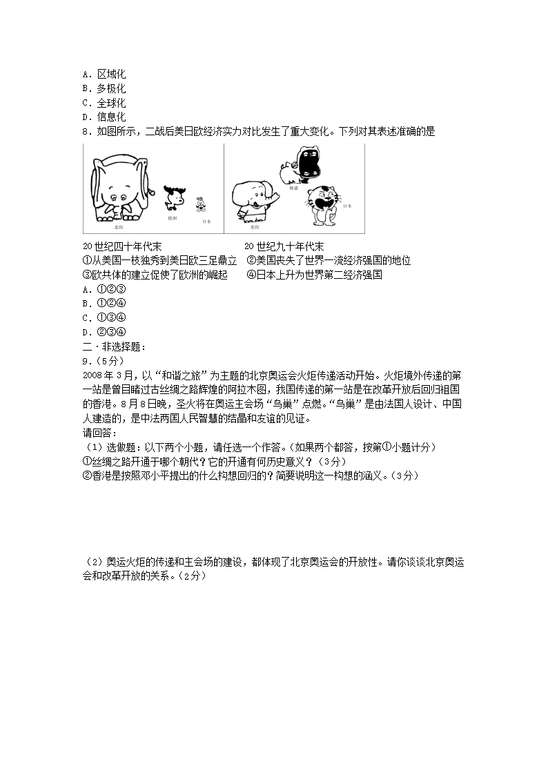【文档名称】 2008年陕西省铜川中考历史真题及答案(Word版).doc