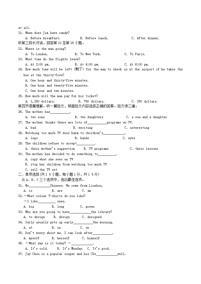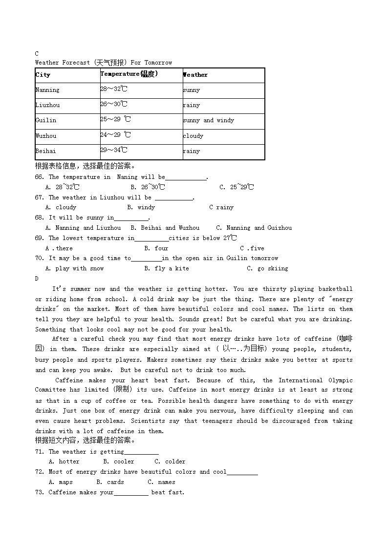 【文档预览】 无忧考网整理发布2013年广西柳州市中考英语真题及答案(Word版),前五页预览如下: