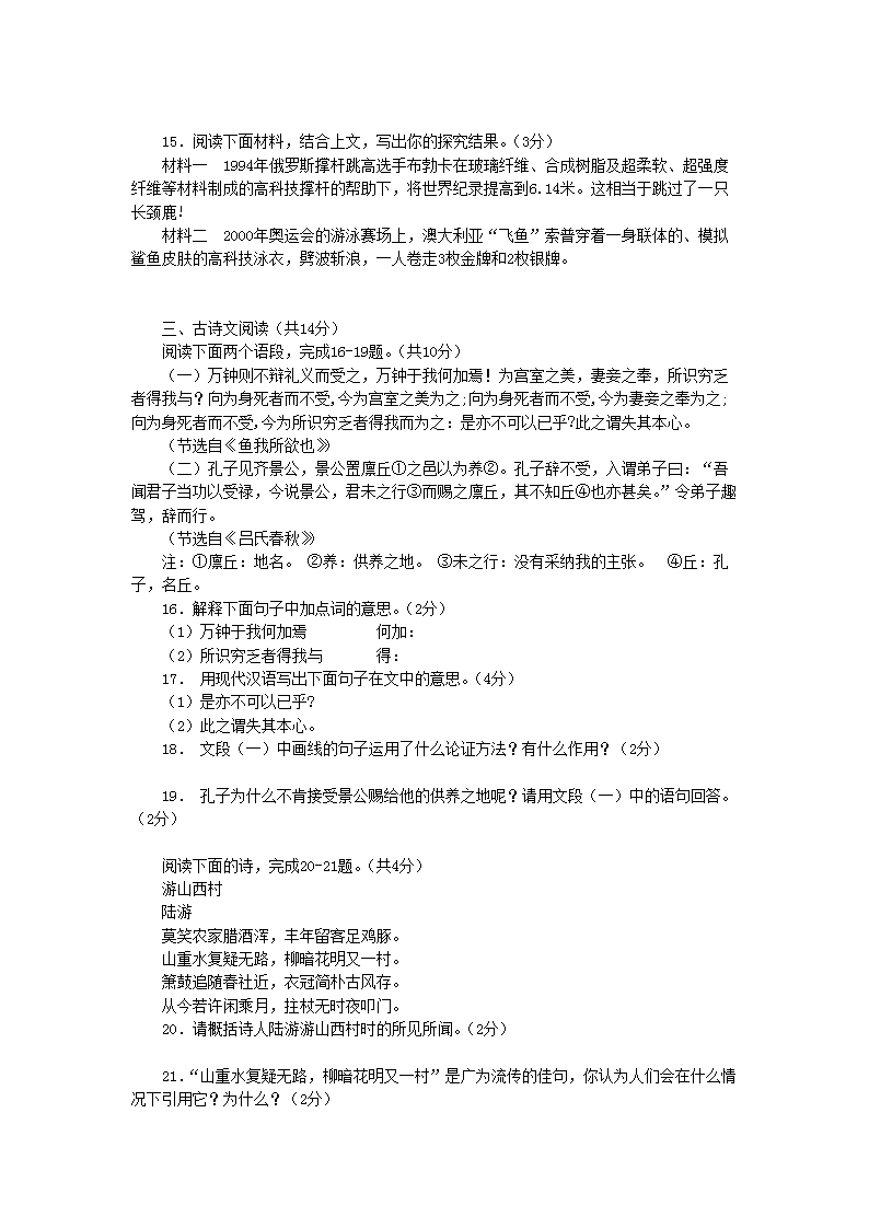【文档名称】 2008年河南郑州中考语文真题及答案(Word版).doc