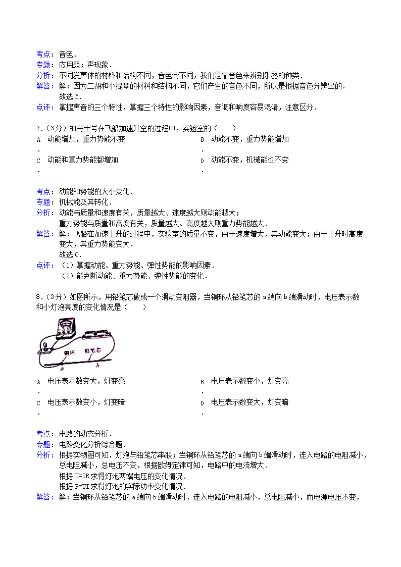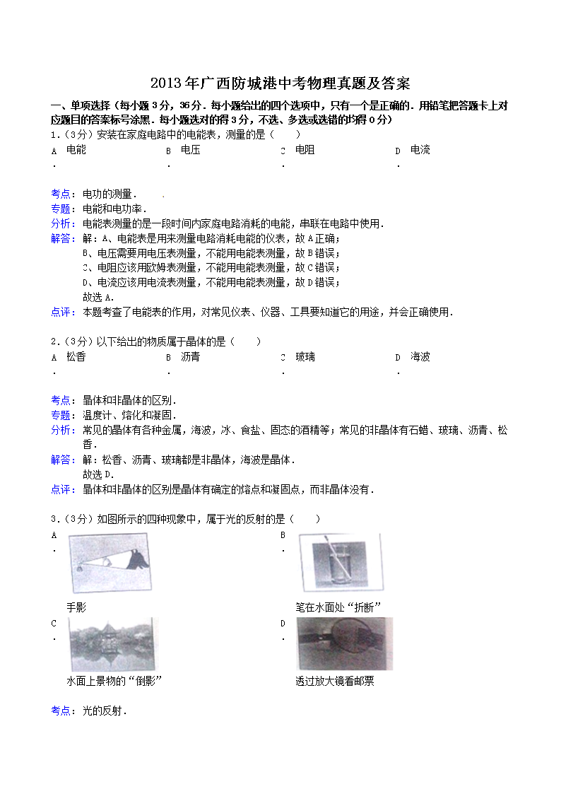【文档名称】 2013年广西防城港市中考物理真题及答案(Word版).doc