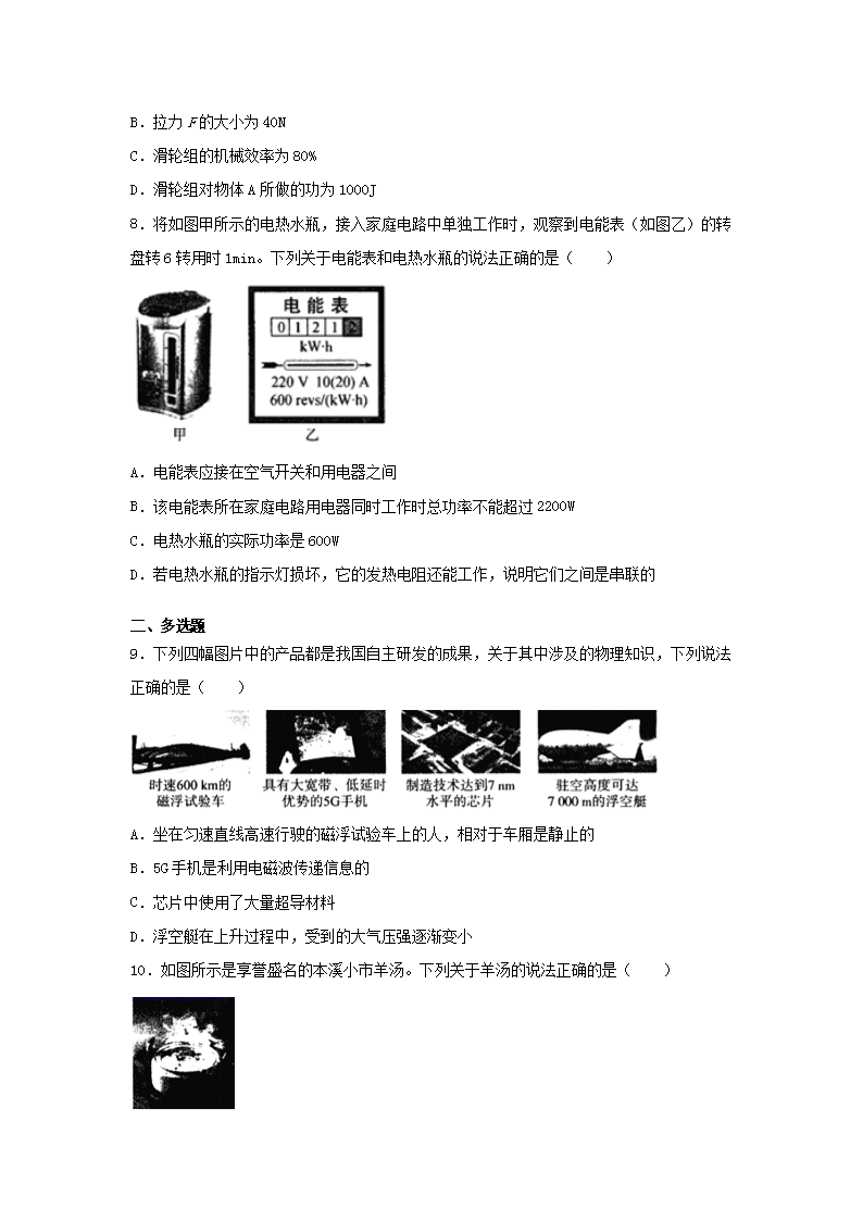 【文档名称】 2019年辽宁省本溪市中考物理真题及答案(Word版).doc